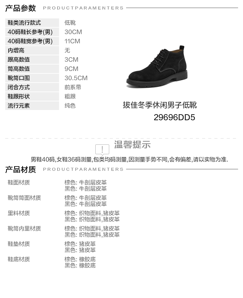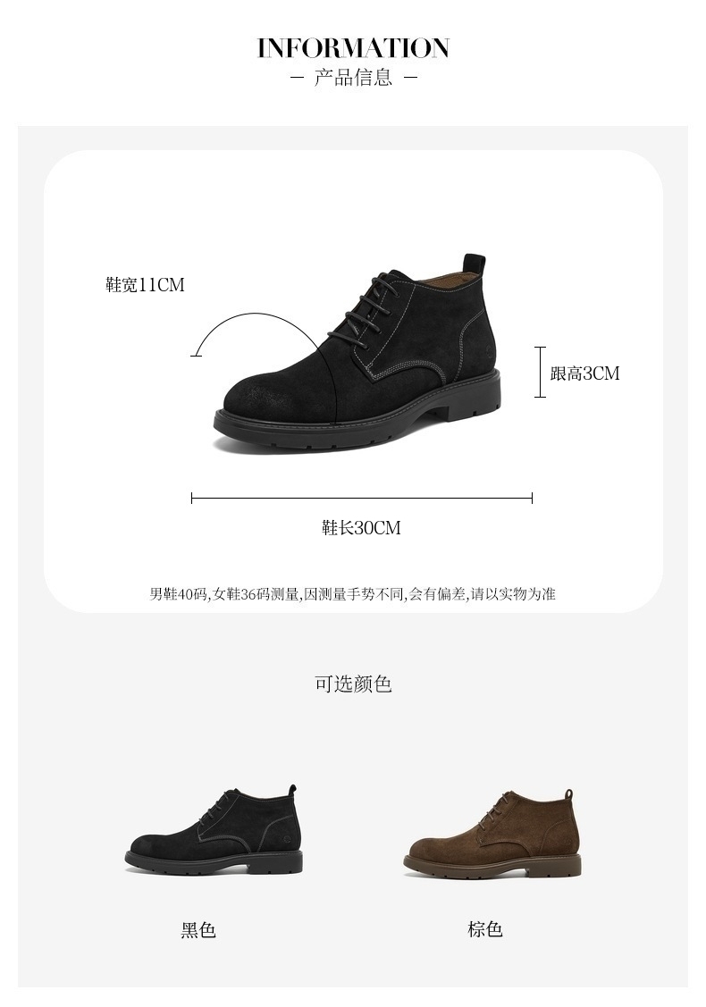 | 闭合方式:系带 | 40码鞋宽参考(男):11CM | 靴筒口围:30.5CM | 上市时间:2025年冬季 | 鞋类流行款式:低靴 |