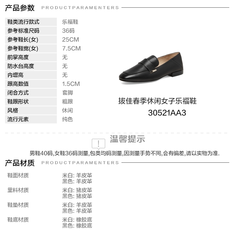 | 皮质特征:羊皮革 | 前掌高度:无 | 防水台高度:无 | 鞋类流行款式:乐福鞋 |