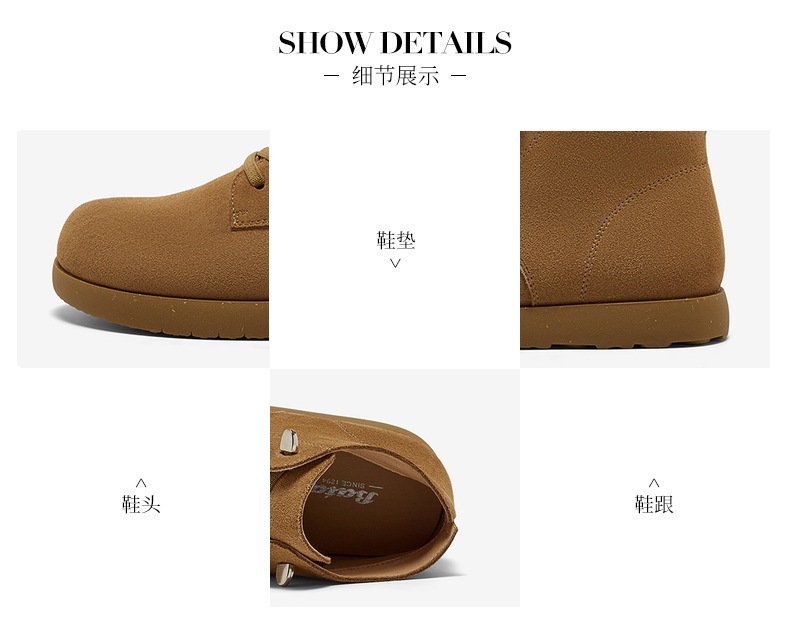| 色系:驼色 | 跟高数值:2CM | 性别:女子 | 里料材质:织物面料猪皮革 | 制鞋工艺:胶贴皮鞋 |