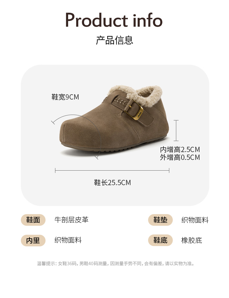 | 配跟:无 | 上市时间:2025年冬季 | 鞋类流行款式:勃肯鞋 | 鞋头款式:圆头 | 鞋面图案:纯色 |