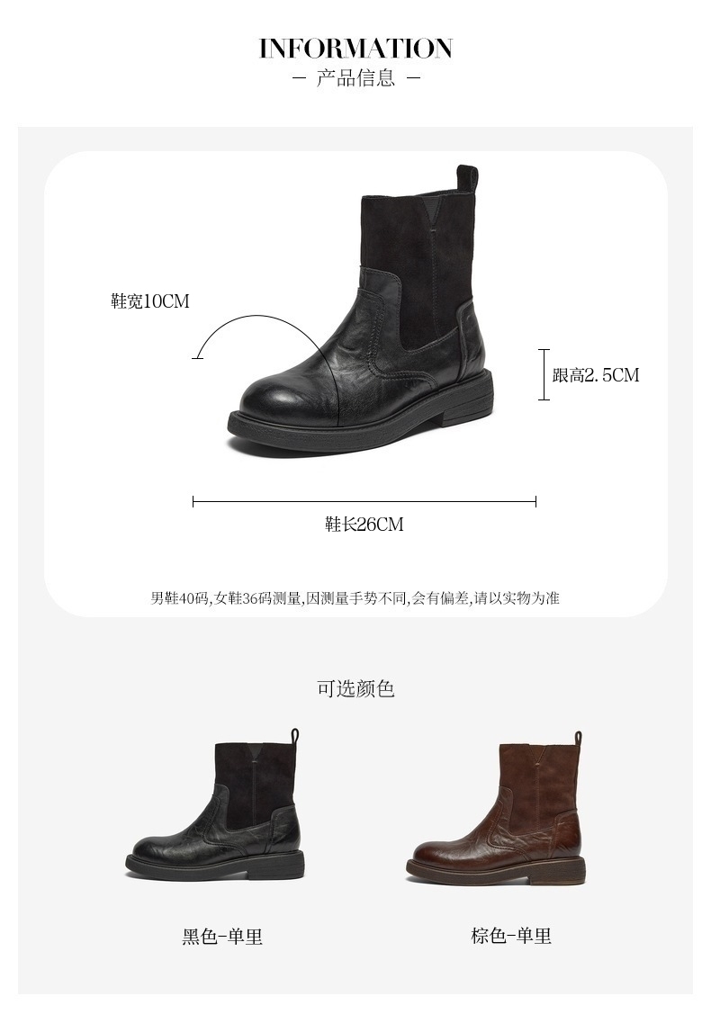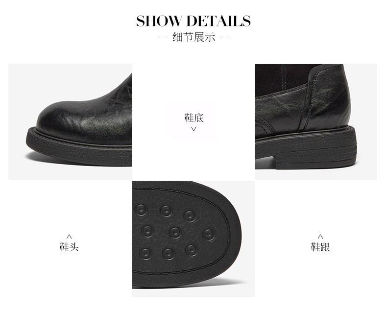 | 帮面材质:羊皮革 | 配跟:无 | 上市时间:2025年冬季 | 鞋类流行款式:时装靴 | 鞋头款式:圆头 |