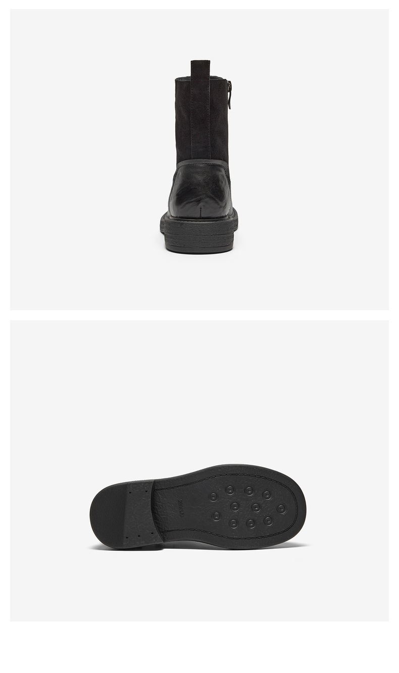 | 鞋底材质:橡胶底 | 靴筒内里材质:猪皮革织物面料 | 内增高:无 | 鞋面材质:羊猄皮革羊皮革 | 闭合方式:侧拉链 |