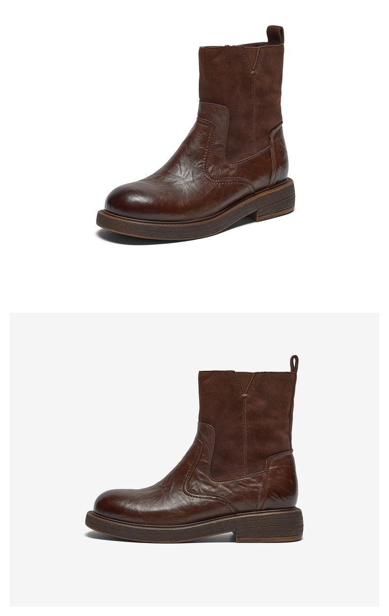 | 帮面材质:羊皮革 | 配跟:无 | 上市时间:2025年冬季 | 鞋类流行款式:时装靴 | 鞋头款式:圆头 |