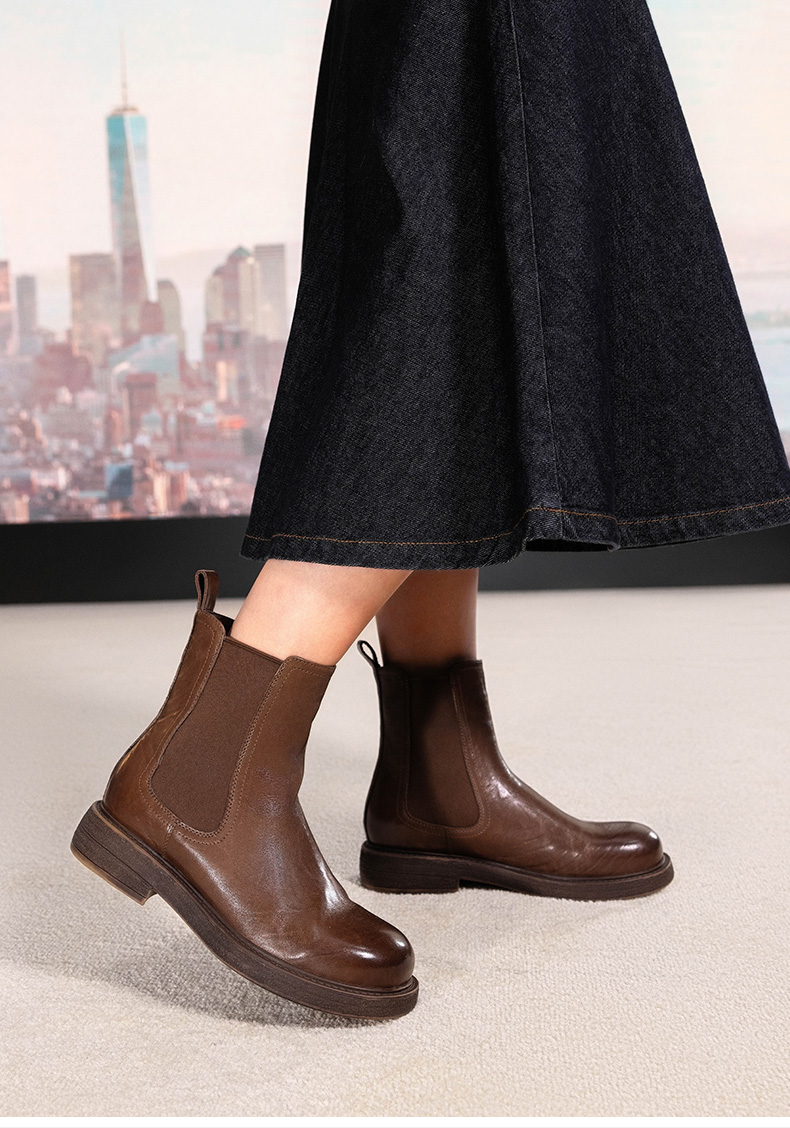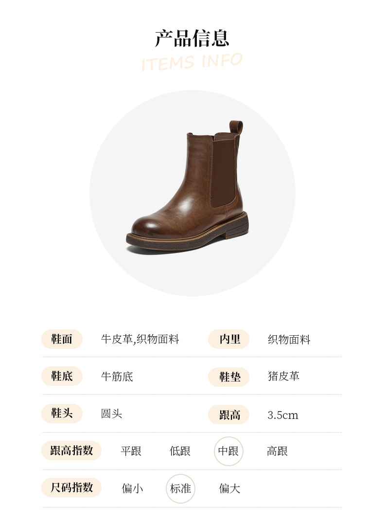 帮面材质:牛皮革 配跟:无 靴筒口围:27.5CM 上市时间:2025年冬季 鞋类流行款式:切尔西靴