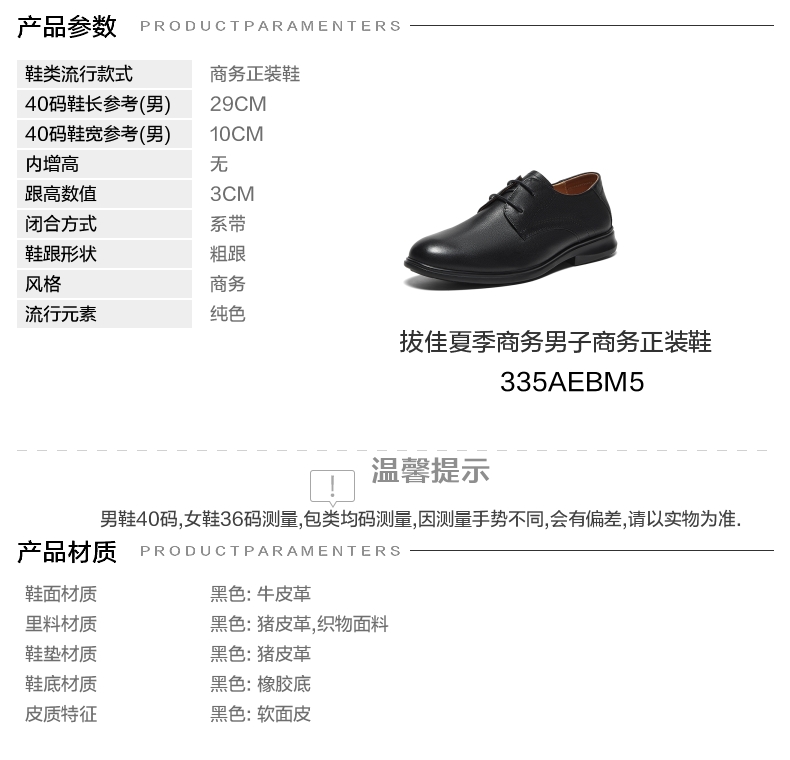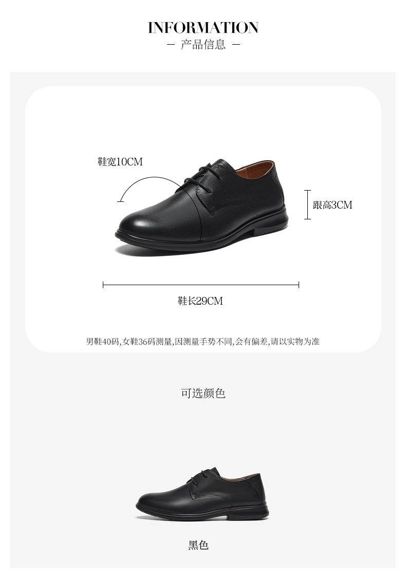 | 风格:商务 | 色系:黑色 | 跟高数值:3CM | 40码鞋宽参考(男):10CM | 性别:男子 |