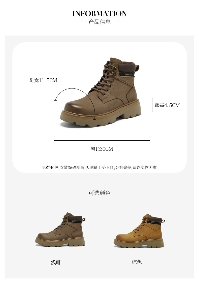 | 闭合方式:系带 | 40码鞋宽参考(男):11.5CM | 靴筒口围:32CM | 上市时间:2025年冬季 | 鞋类流行款式:马丁靴 |