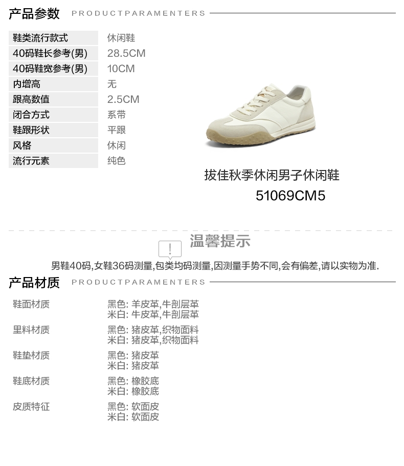 | 风格:休闲 | 色系:米色 | 跟高数值:2.5CM | 40码鞋宽参考(男):10CM | 性别:男子 |
