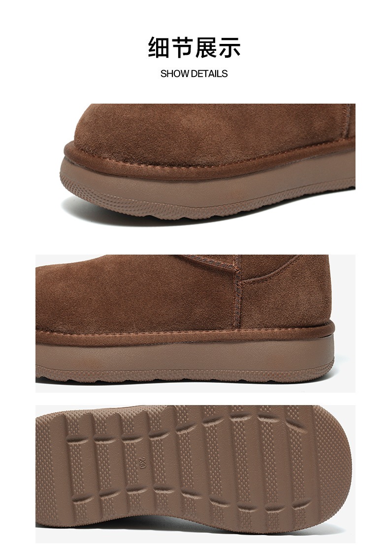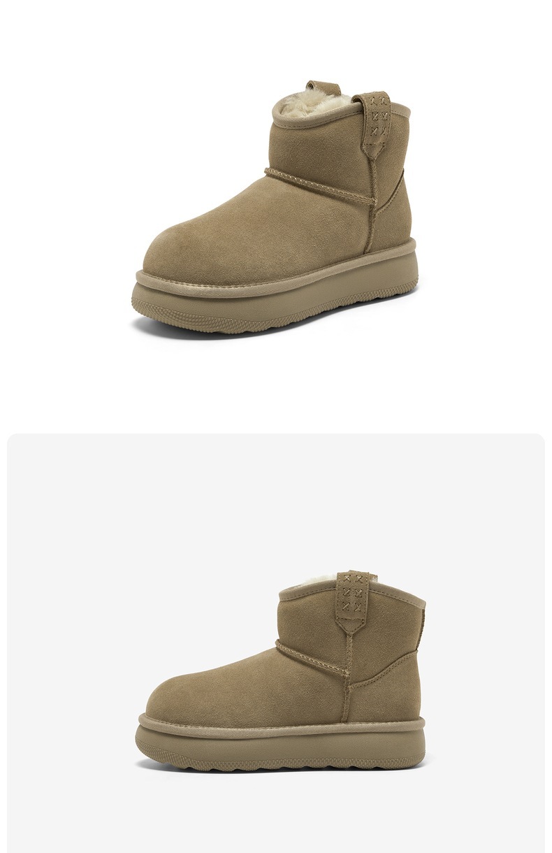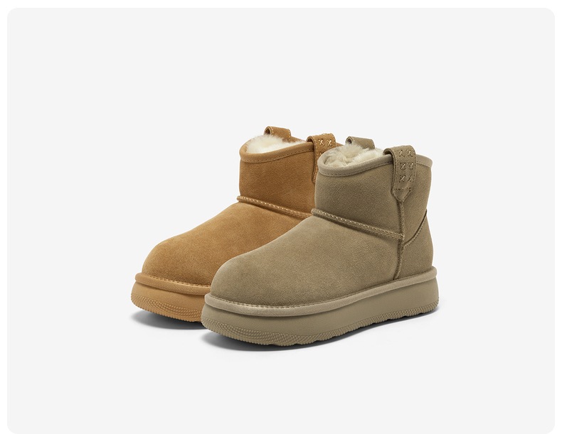 | 帮面材质:牛剖层革 | 配跟:无 | 靴筒口围:30CM | 上市时间:2026年春季 | 鞋类流行款式:雪地靴 |