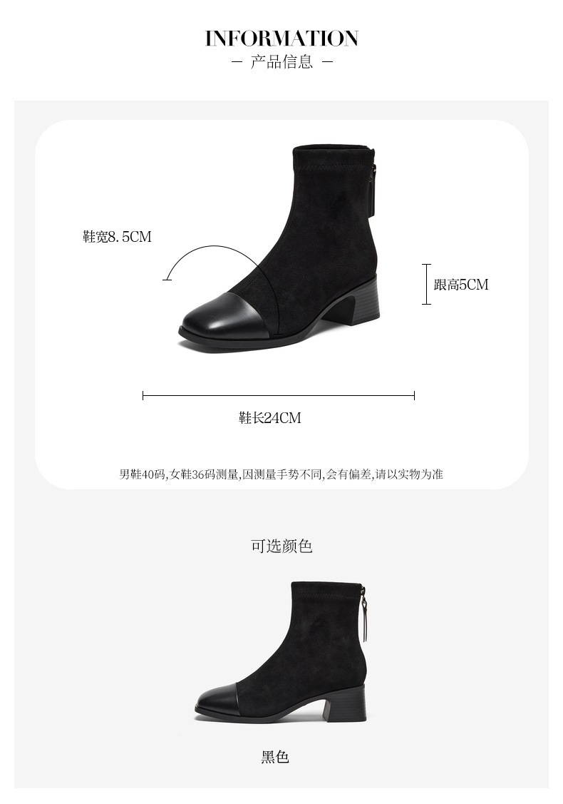 | 鞋底材质:橡胶底 | 靴筒内里材质:织物面料 | 内增高:无 | 鞋面材质:人造革织物面料 | 闭合方式:后拉链 |