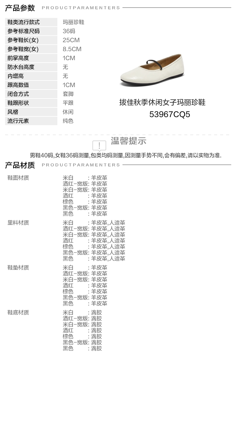 | 鞋垫材质:羊皮革 | 前掌高度:1CM | 皮质特征:羊皮革 | 鞋类流行款式:玛丽珍鞋 |
