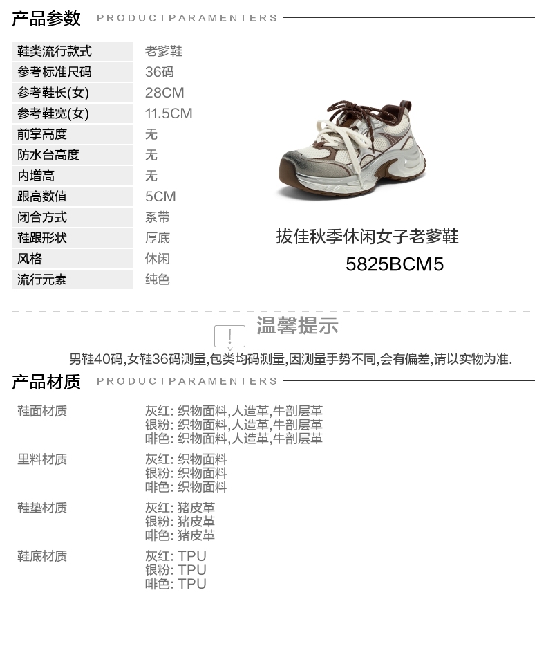 | 配跟:无 | 上市时间:2025年秋季 | 鞋类流行款式:老爹鞋 | 鞋头款式:圆头 | 鞋面图案:纯色 |