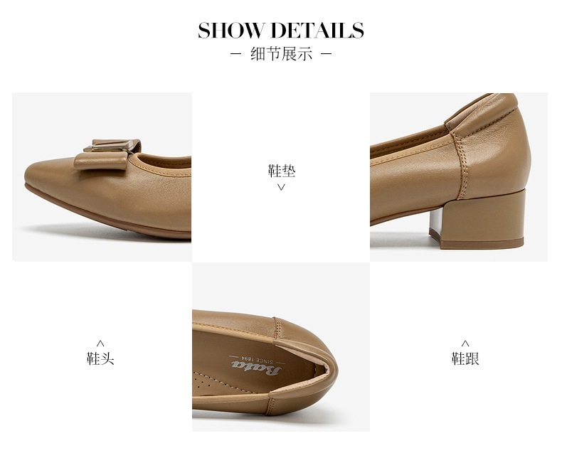 | 鞋类流行款式:浅口鞋 | 鞋头款式:圆头 | 跟高范围:中跟鞋(3-5CM) | 鞋面图案:纯色 | 鞋跟形状:粗跟 |