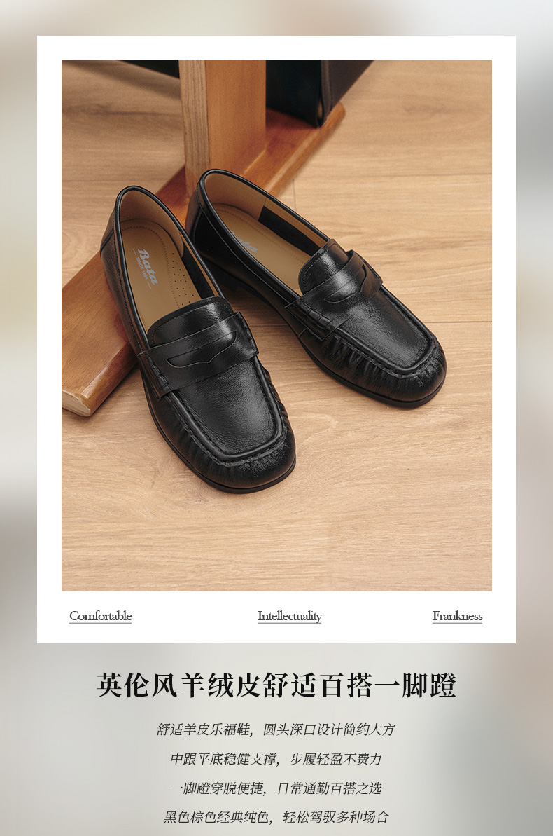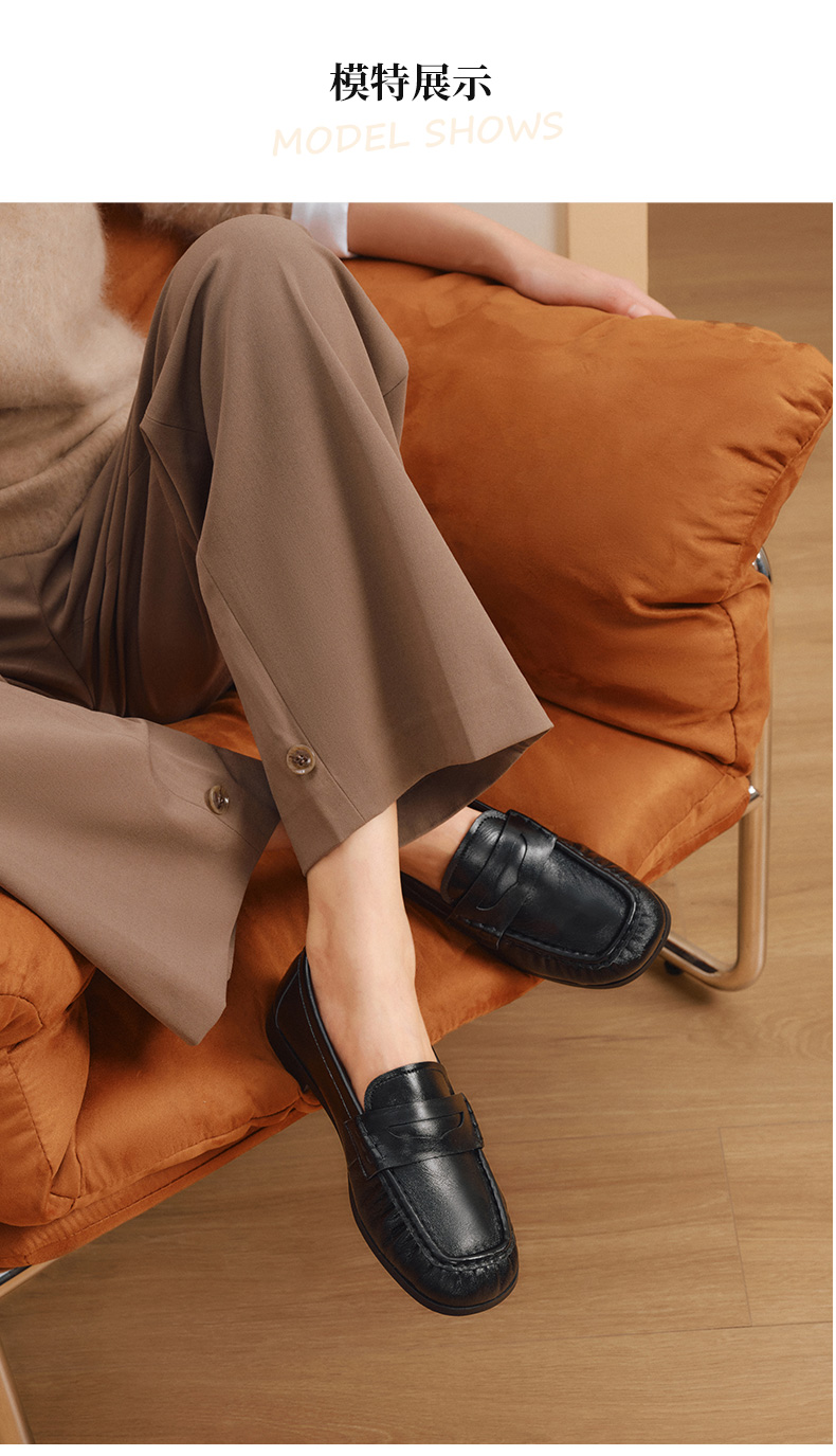 | 配跟:无 | 上市时间:2025年秋季 | 鞋类流行款式:乐福鞋 | 鞋头款式:圆头 | 鞋面图案:纯色 |