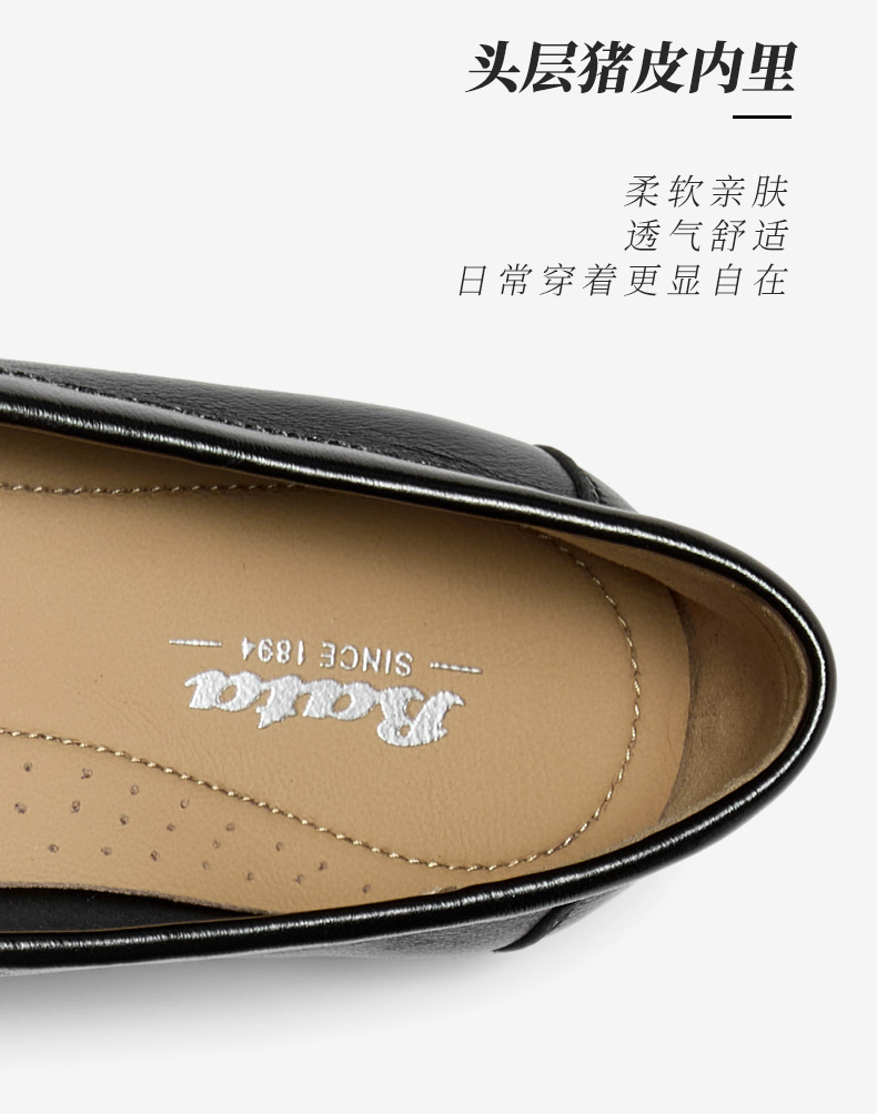 | 色系:黑色 | 跟高数值:2CM | 性别:女子 | 里料材质:超纤后套猪皮革 | 制鞋工艺:胶贴皮鞋 |
