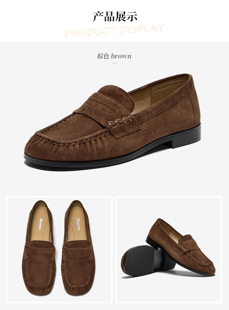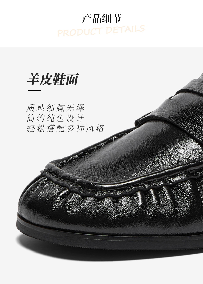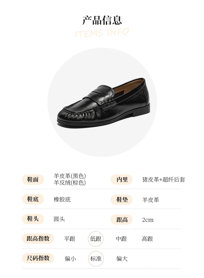 | 配跟:无 | 上市时间:2025年秋季 | 鞋类流行款式:乐福鞋 | 鞋头款式:圆头 | 鞋面图案:纯色 |