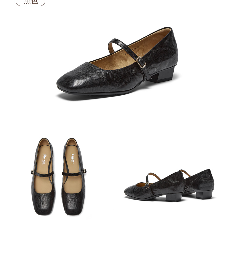 | 风格:休闲 | 鞋面内里材质:猪皮 | 色系:黑色 | 跟高数值:3CM | 配跟:无 |