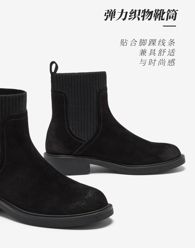 | 鞋底材质:橡胶底 | 靴筒内里材质:织物面料猪皮革 | 内增高:无 | 鞋面材质:牛剖层革织物面料 | 闭合方式:套筒 |
