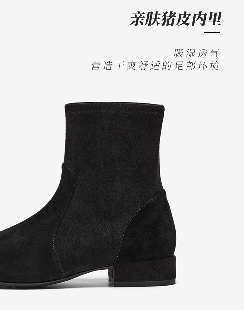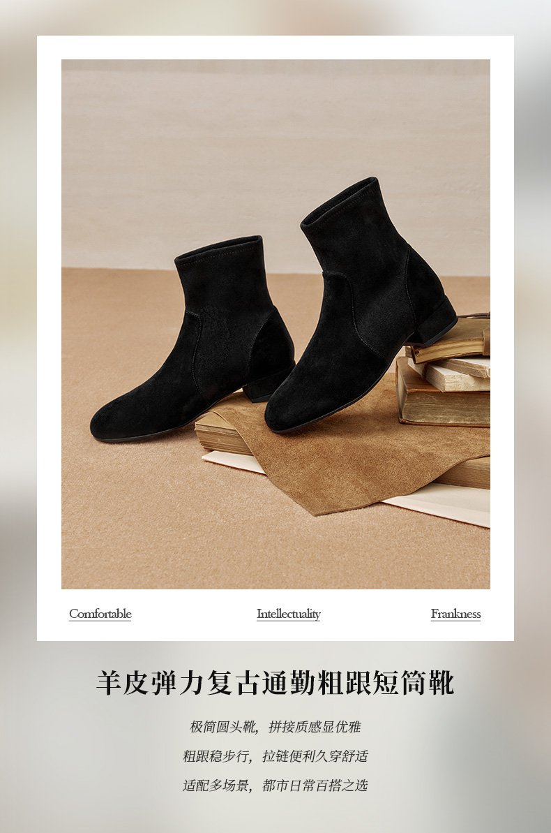 | 鞋底材质:橡胶底 | 靴筒内里材质:超纤猪皮革织物面料 | 内增高:无 | 鞋面材质:羊皮革织物面料 | 闭合方式:套筒 |