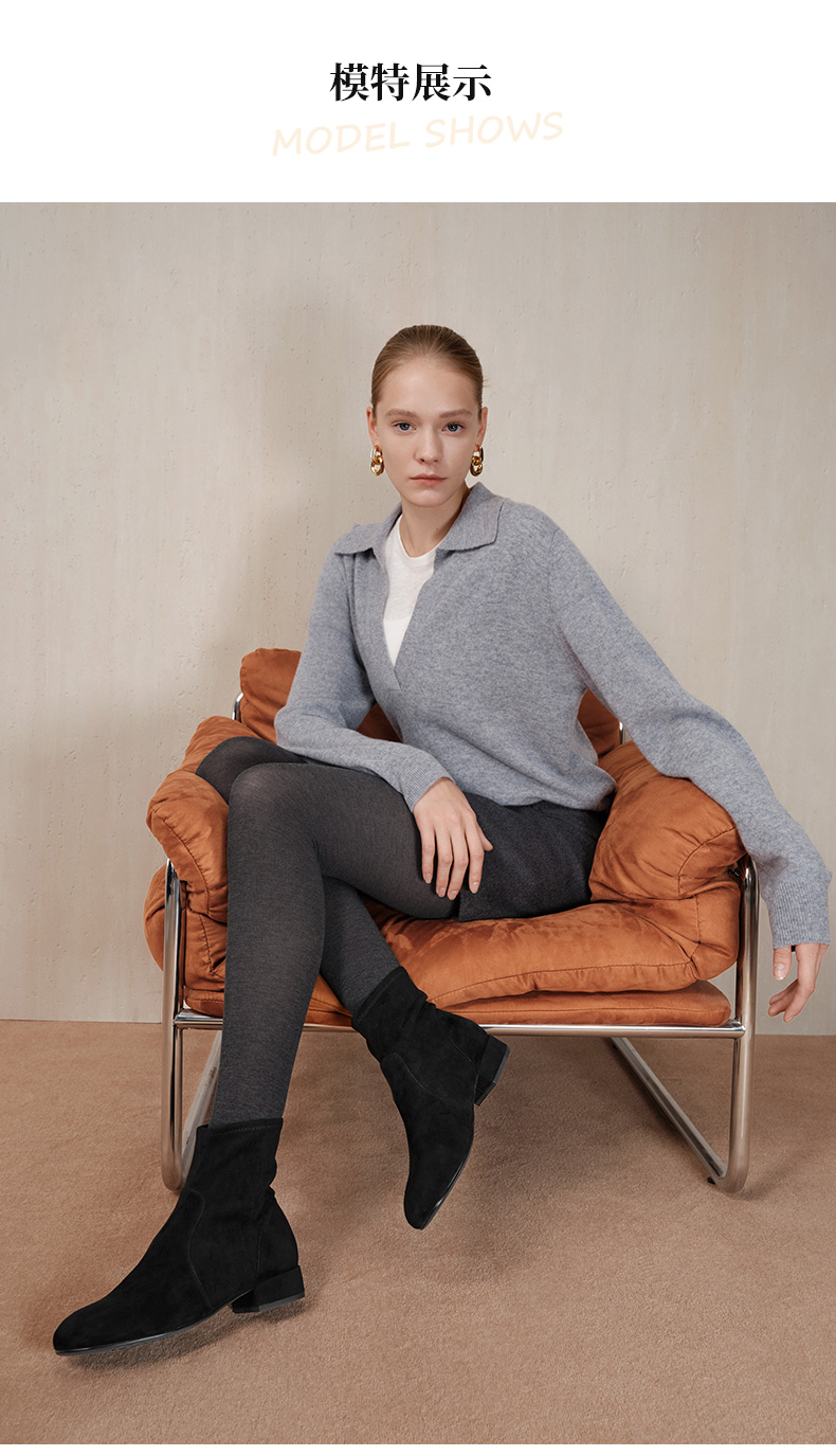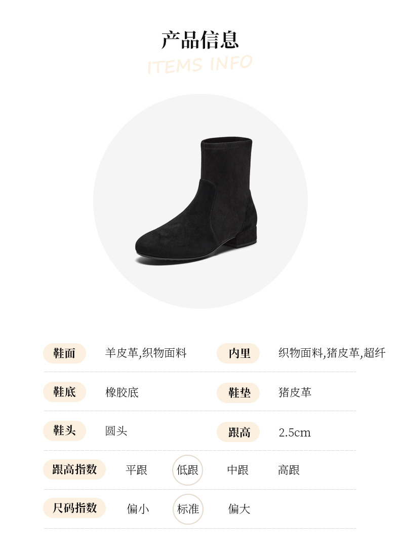 | 帮面材质:织物羊皮 | 配跟:无 | 靴筒口围:24CM | 上市时间:2025年冬季 | 鞋类流行款式:时装靴 |