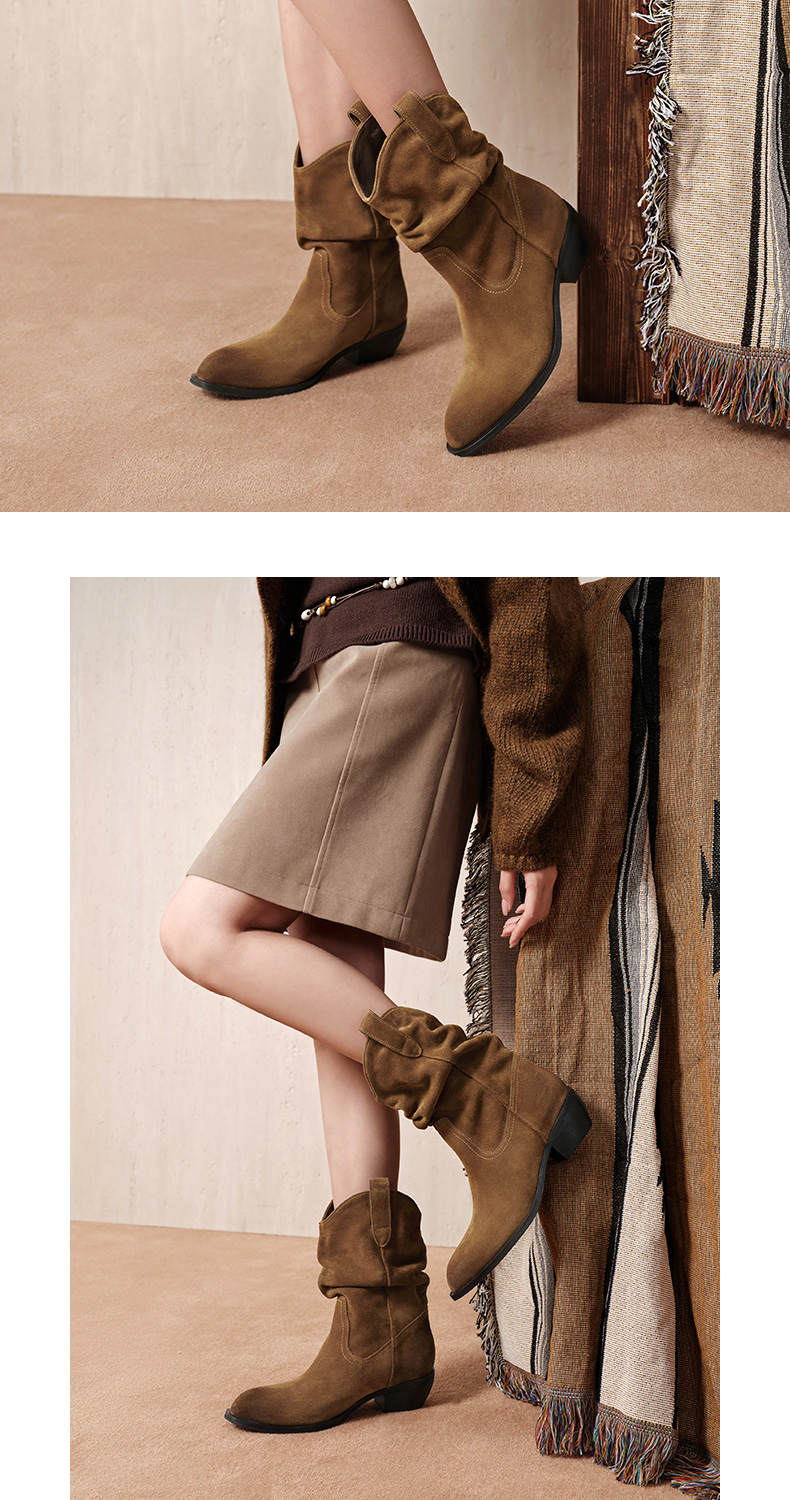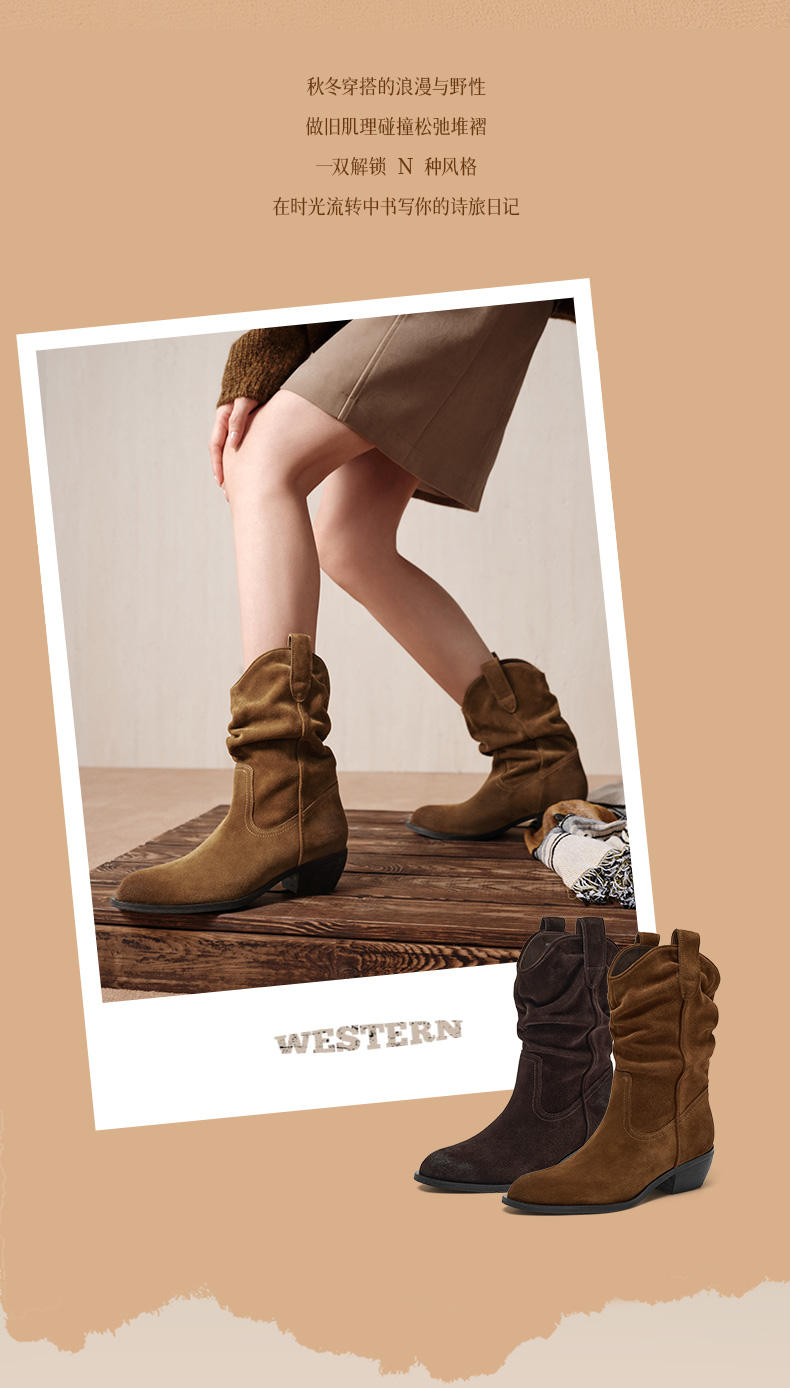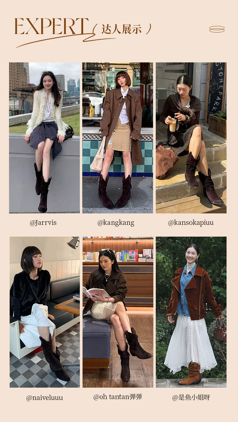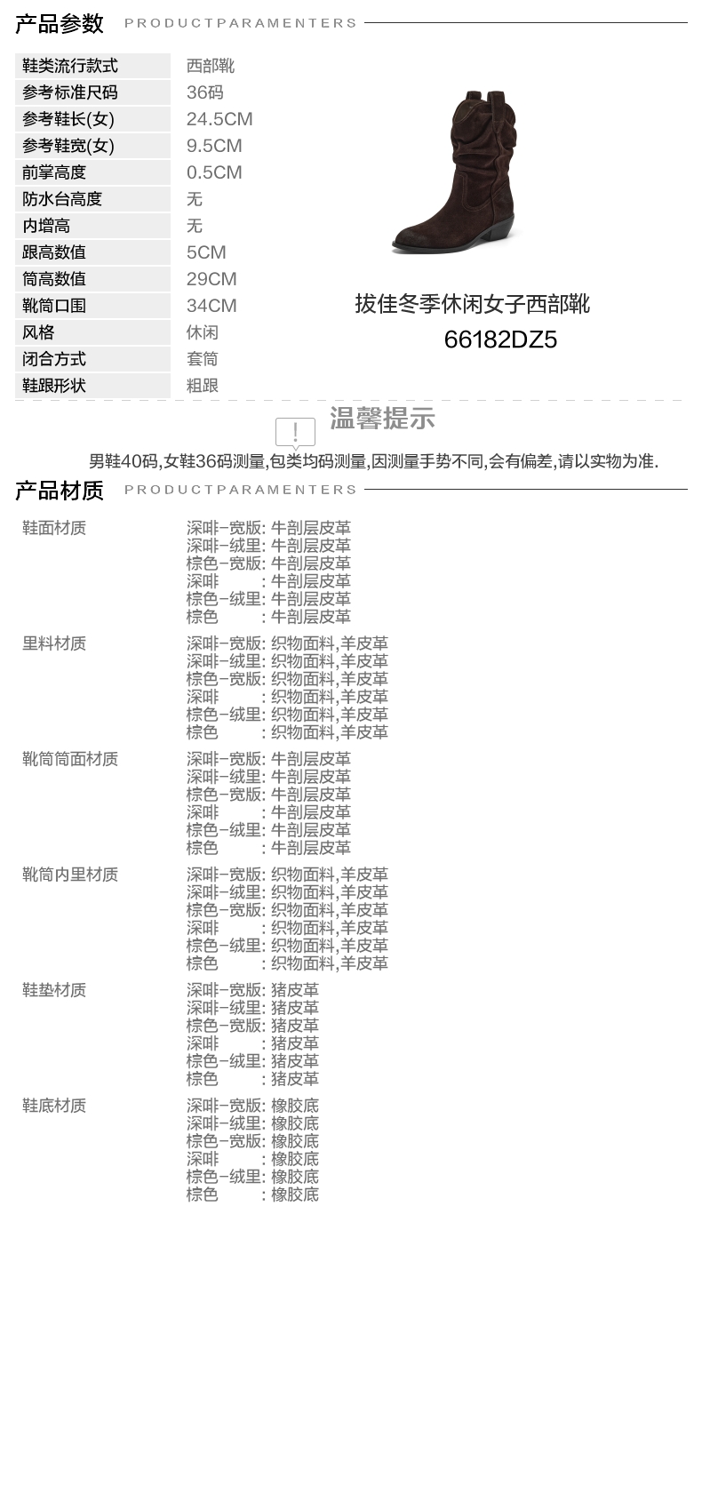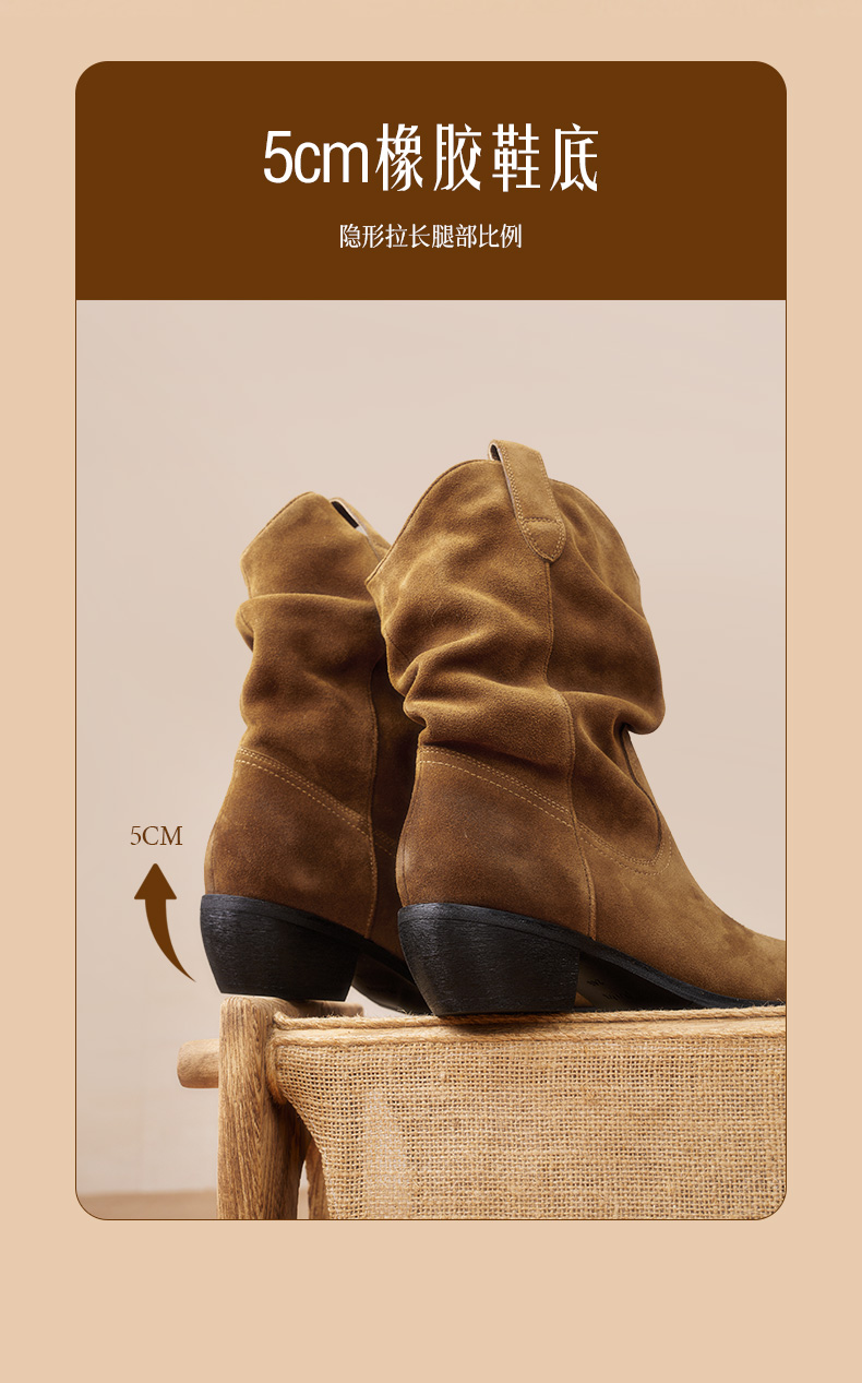 | 靴筒口围:34CM | 配跟:无 | 上市时间:2025年冬季 | 鞋类流行款式:西部靴 | 鞋头款式:圆头 |