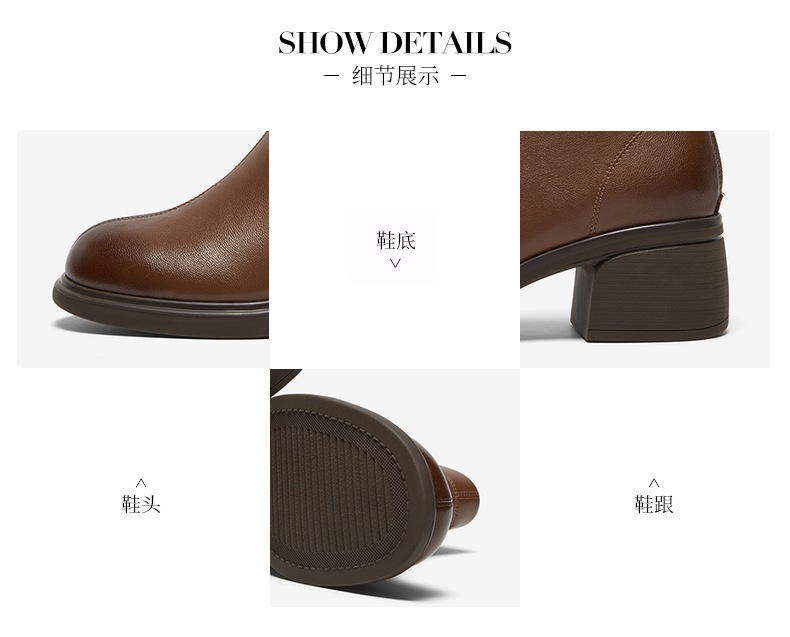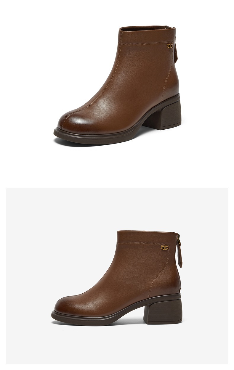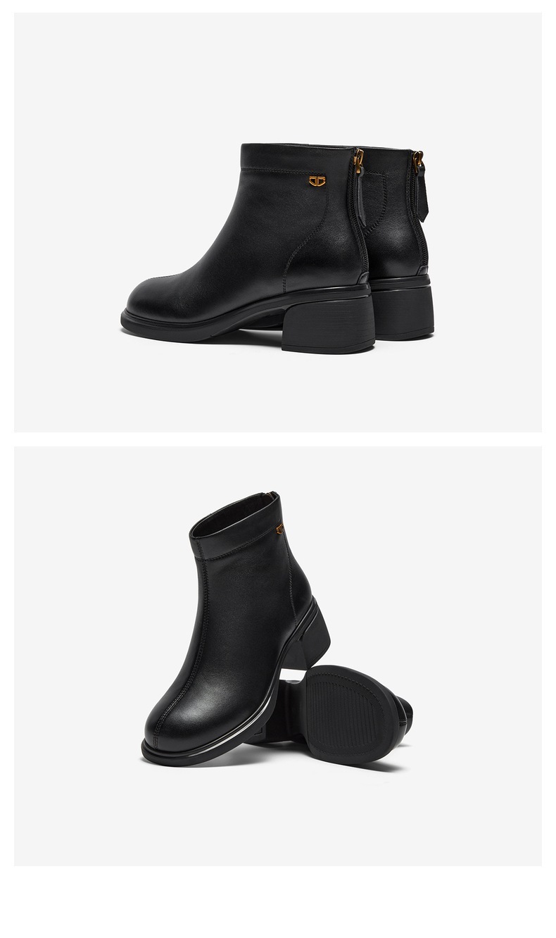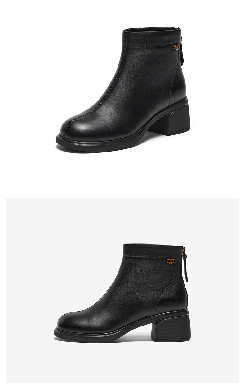 | 鞋底材质:橡胶底 | 靴筒内里材质:织物面料人造革 | 内增高:无 | 鞋面材质:羊皮革 | 闭合方式:后拉链 |