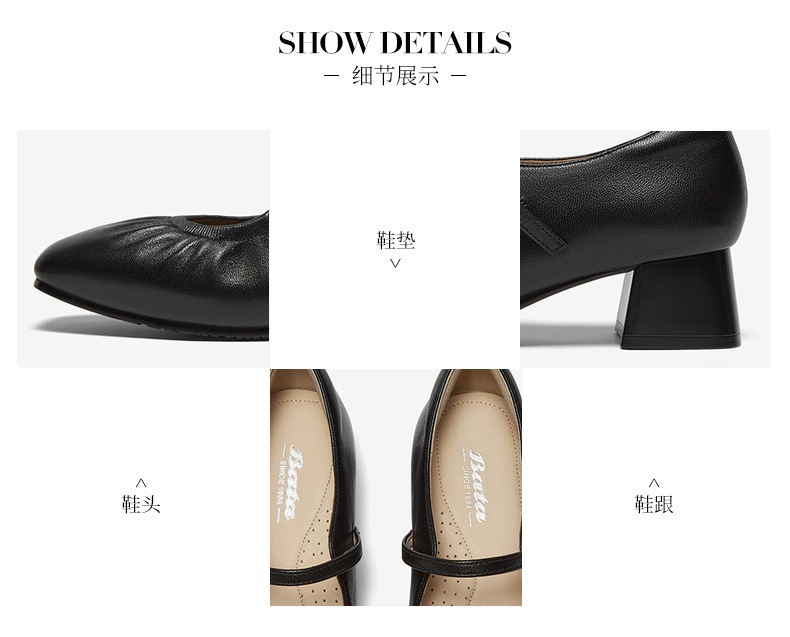 | 鞋头款式:圆头 | 鞋底材质:橡胶底 | 鞋面图案:纯色 | 内增高:无 | 鞋跟形状:粗跟 |