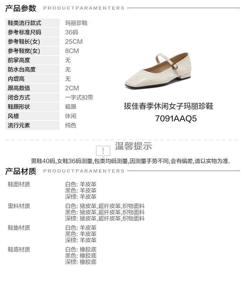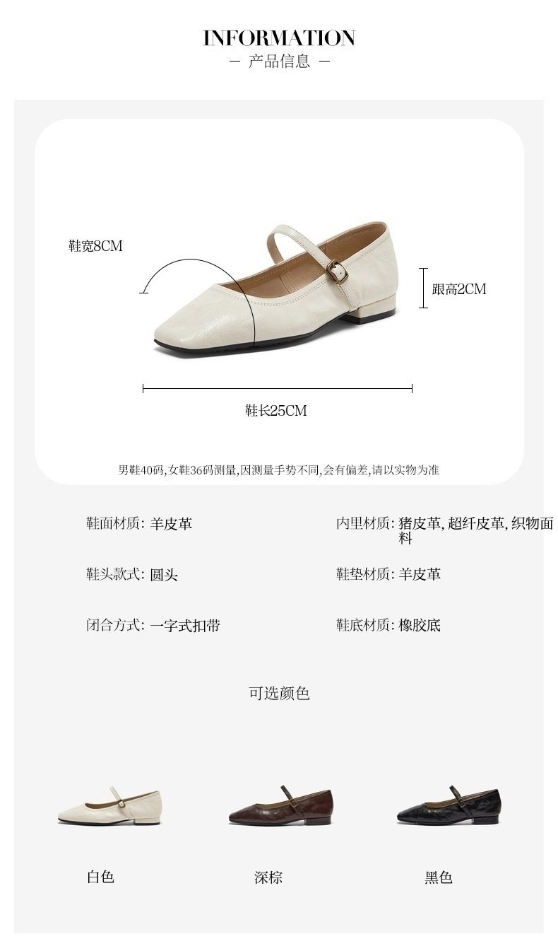| 所在区域:电子商务 | 配跟:无 | 开口深度:浅口 | 风格分类:玛丽珍鞋 | 上市时间:2025年春季 |
