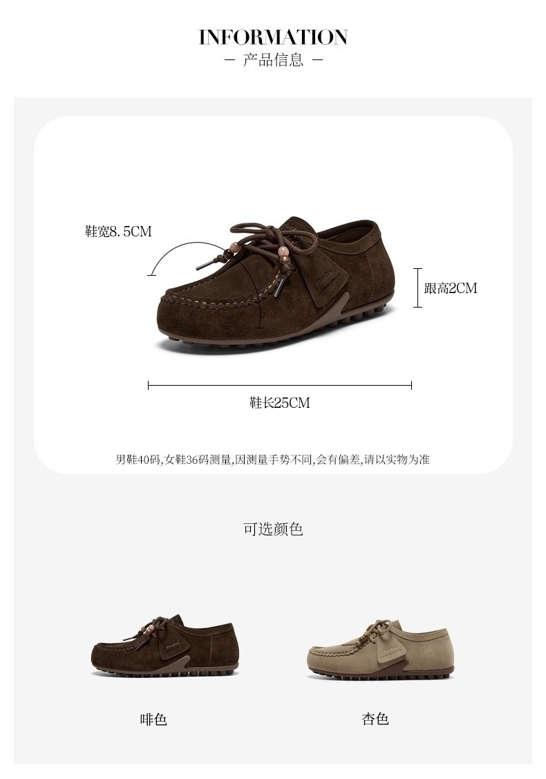 | 闭合方式:套脚 | 风格:休闲 | 跟高数值:2CM | 色系:咖啡色 | 配跟:无 |