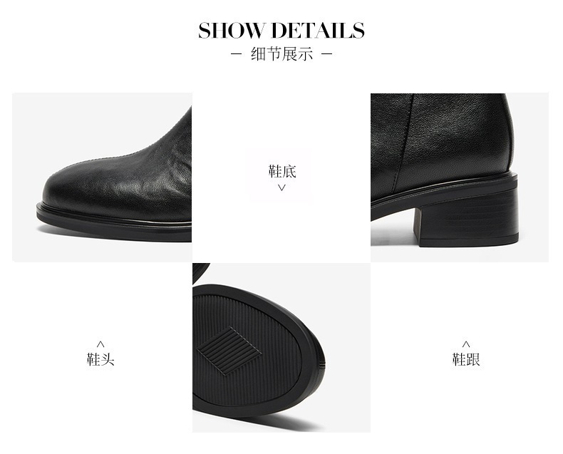 | 鞋底材质:橡胶底 | 靴筒内里材质:人造革织物面料 | 内增高:无 | 鞋面材质:羊皮革 | 闭合方式:侧拉链 |