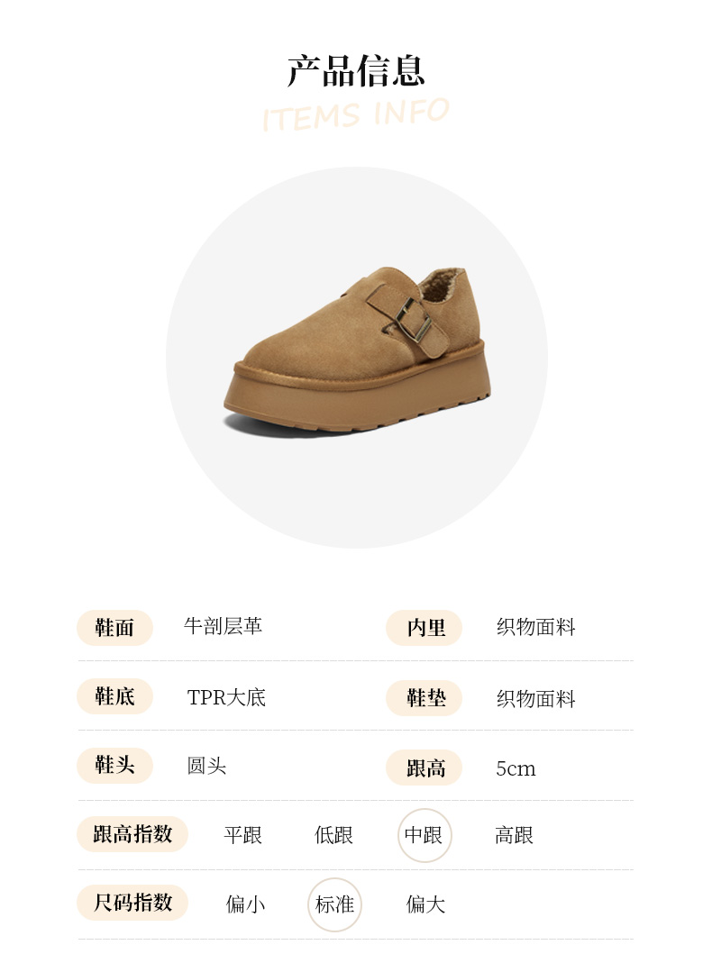 | 里料材质:织物面料 | 上市时间:2024年冬季 | 制鞋工艺:胶贴皮鞋 | 款式季节:冬季 | 鞋垫材质:织物面料 |