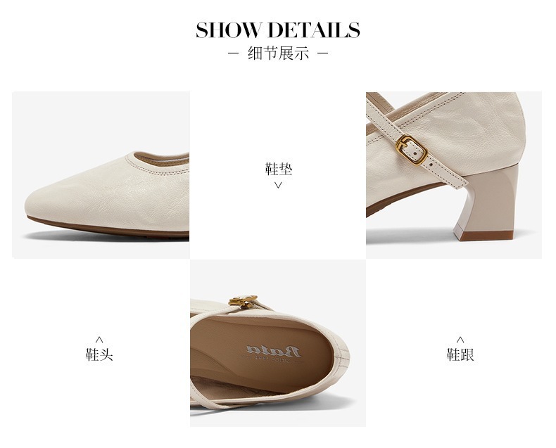 | 鞋面材质:羊皮革 | 流行元素:纯色 | 参考鞋长(女):24CM | 参考鞋宽(女):7CM | 闭合方式:一字式扣带 |