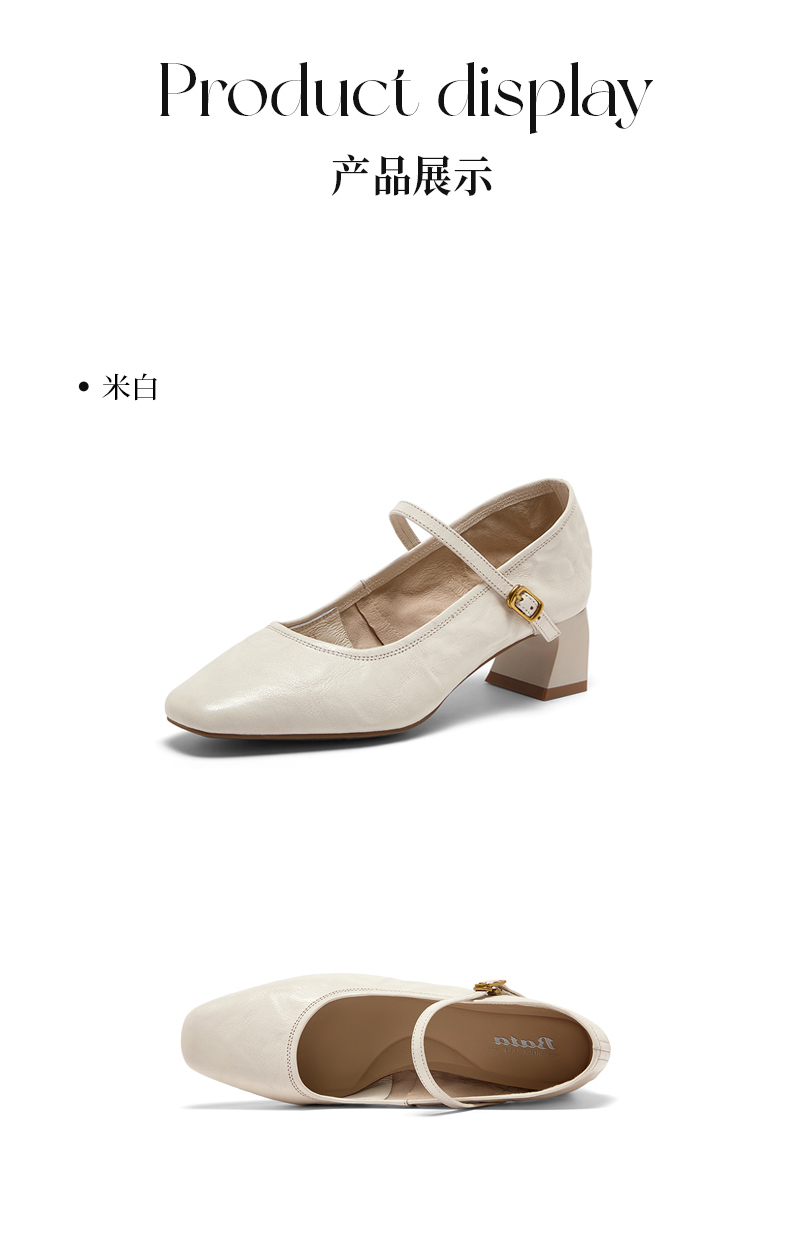 | 鞋面材质:羊皮革 | 流行元素:纯色 | 参考鞋长(女):24CM | 参考鞋宽(女):7CM | 闭合方式:一字式扣带 |