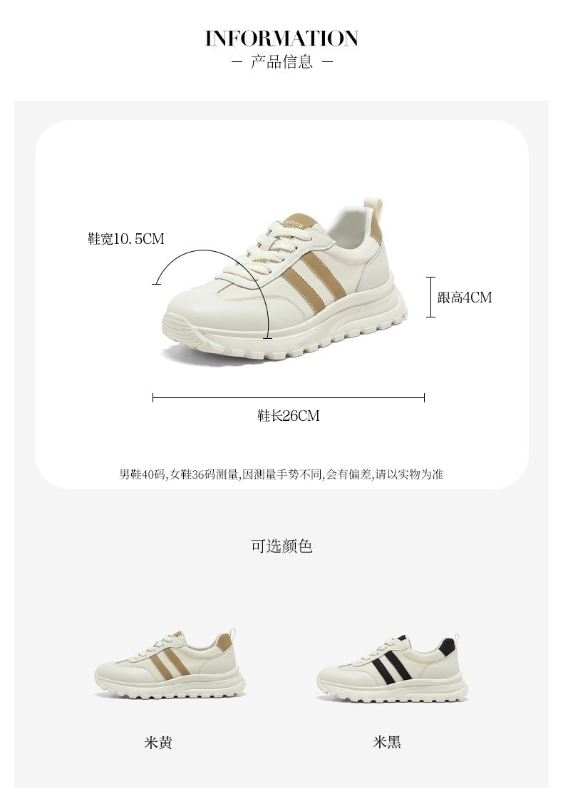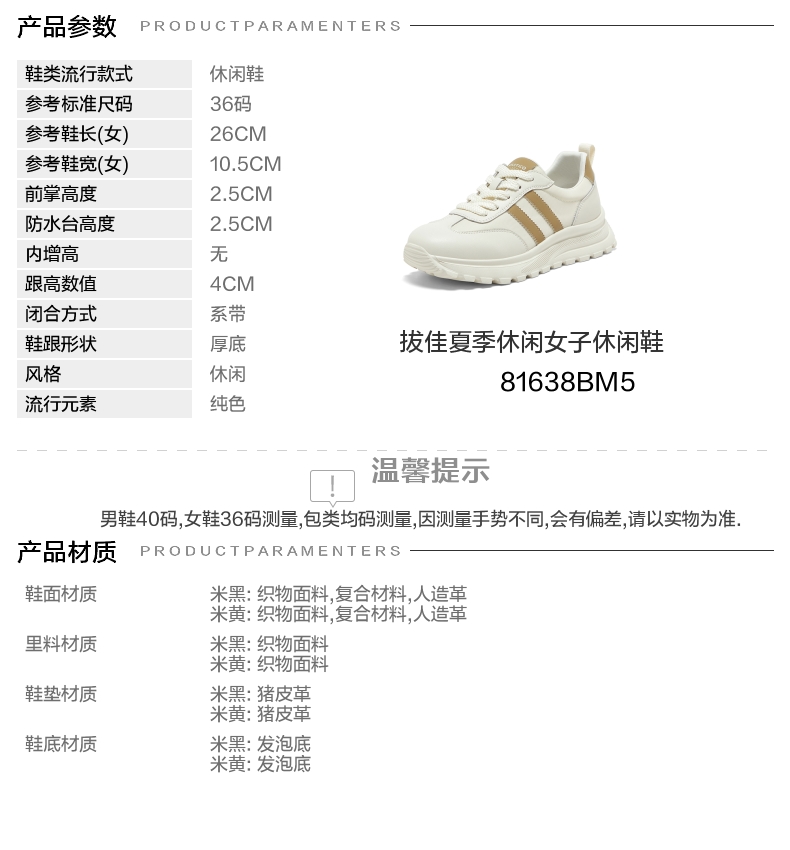 | 鞋跟形状:厚底 | 流行元素:纯色 | 参考鞋长(女):26CM | 参考鞋宽(女):10.5CM | 风格:休闲 |
