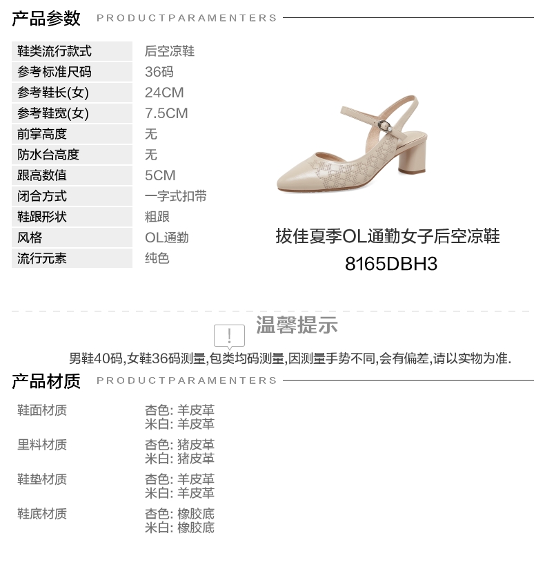 | 上市时间:2023年夏季 | 制鞋工艺:胶贴皮鞋 | 款式季节:夏季 | 鞋垫材质:羊皮革 | 前掌高度:无 |