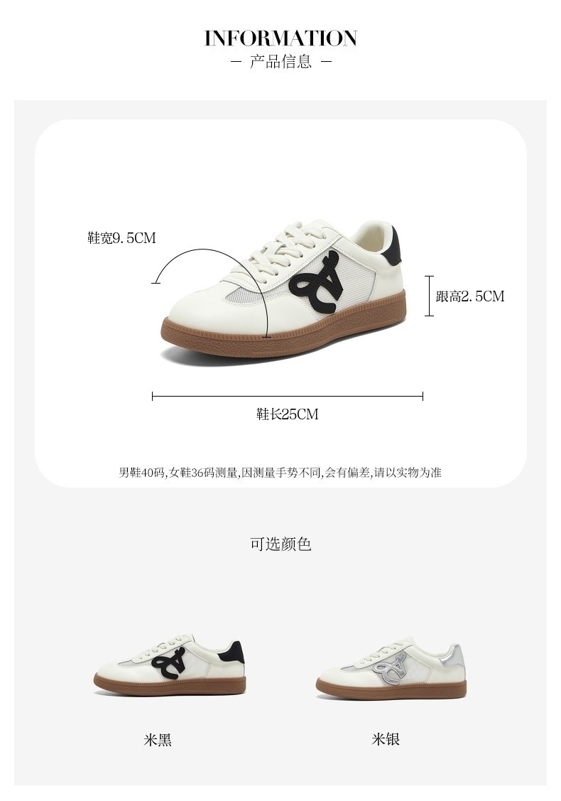 | 年份:2025年 | 色系:米色 | 参考标准尺码:36码 | 跟高数值:2.5CM | 性别:女子 |
