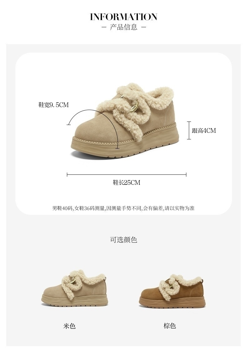 | 色系:米色 | 跟高数值:4CM | 适用人群:通用 | 性别:女子 | 里料材质:羊毛 |