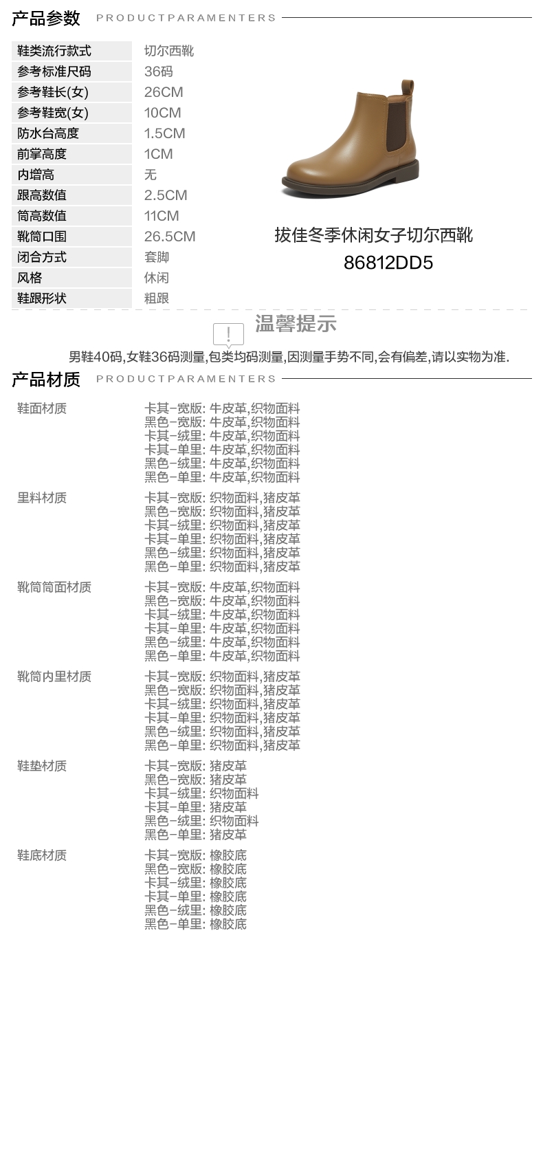 参考鞋宽(女):10CM 风格:休闲 色系:卡其 跟高数值:2.5CM 筒高数值:11CM