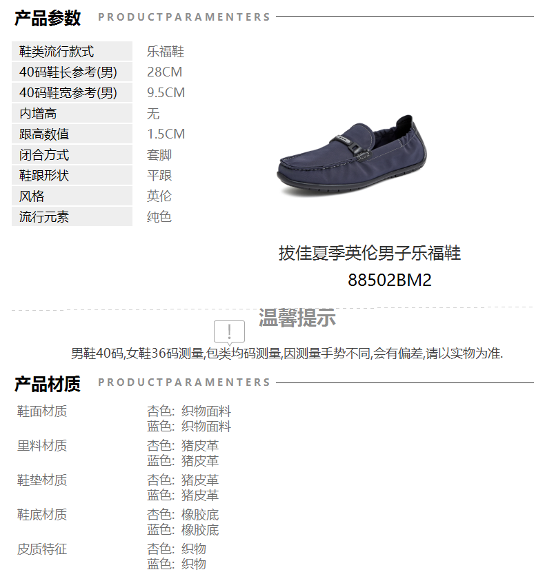 | 风格:英伦 | 色系:蓝色 | 跟高数值:1.5CM | 40码鞋宽参考(男):9.5CM | 上市时间:2022年夏季 |