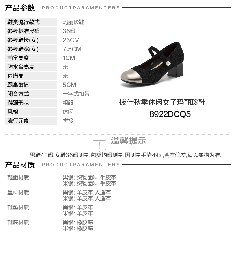 | 前掌高度:1CM | 防水台高度:无 | 鞋类流行款式:玛丽珍鞋 |