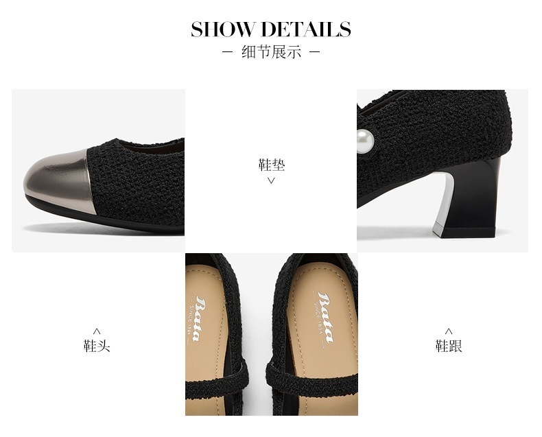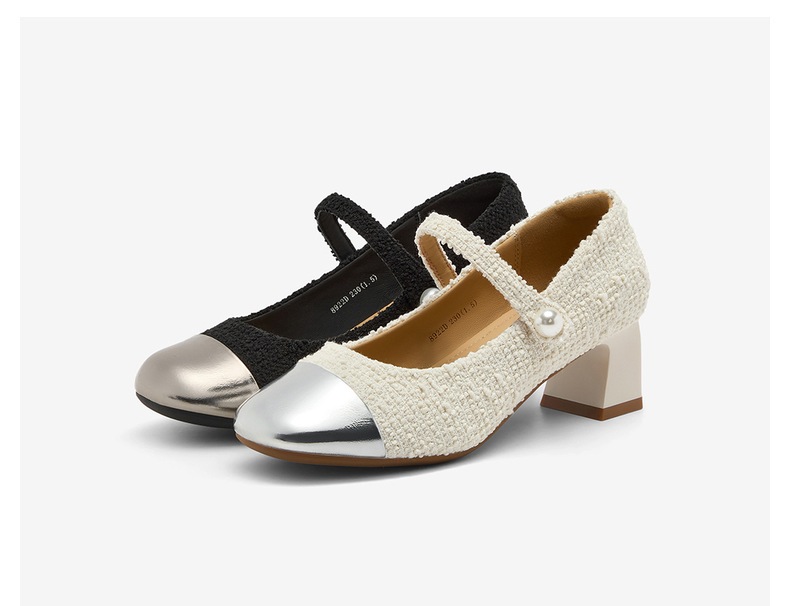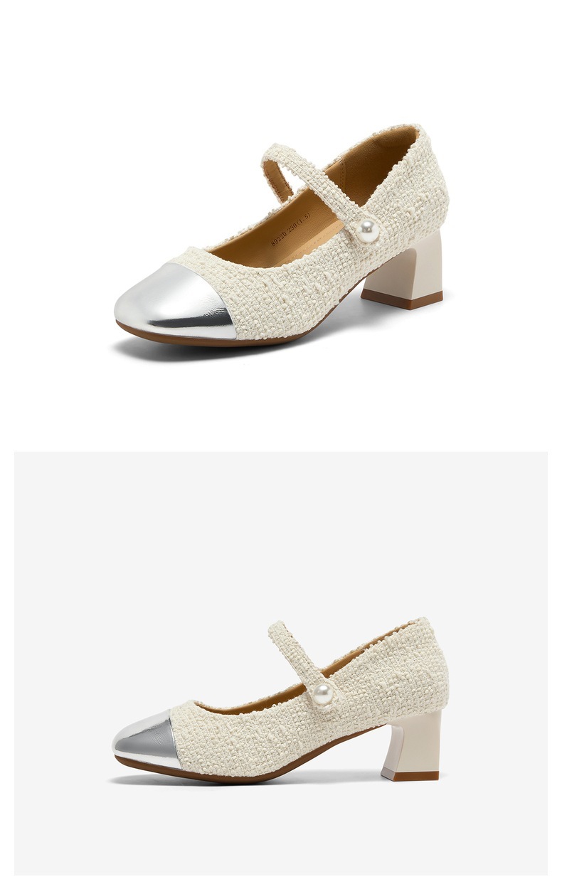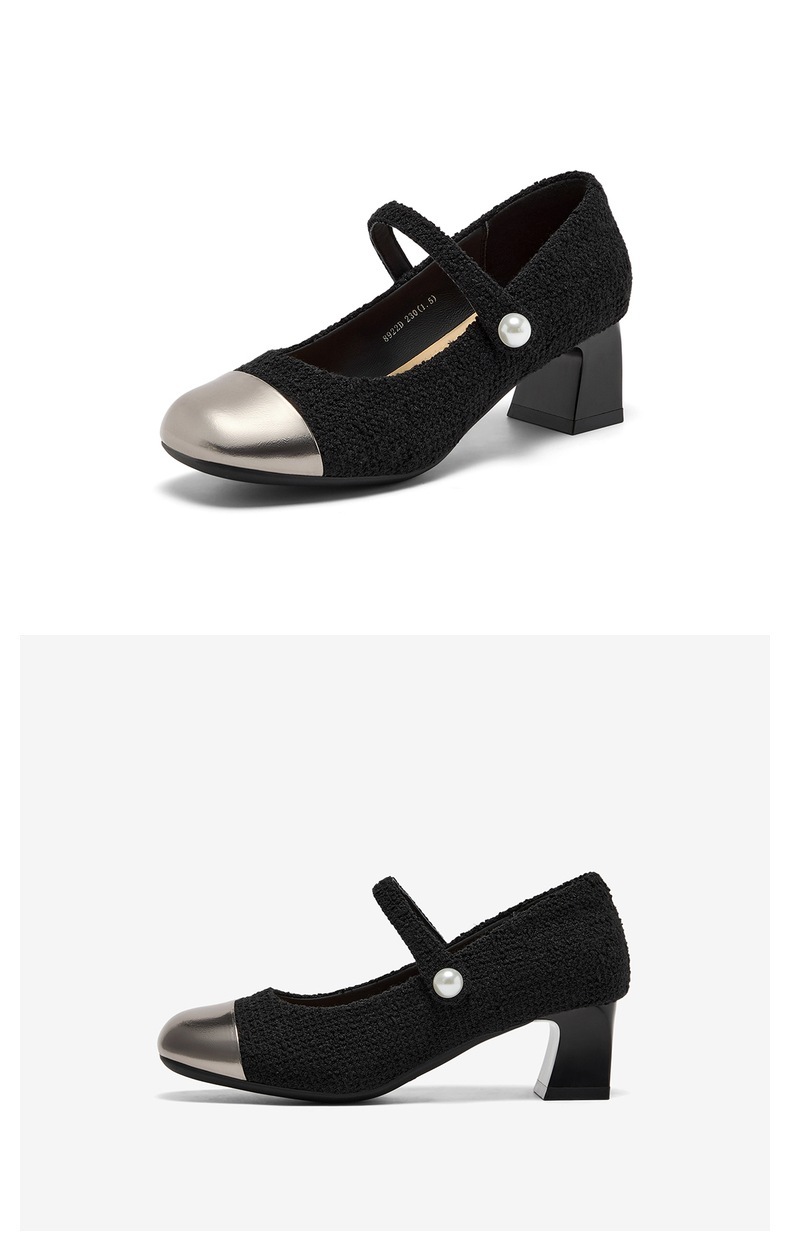 | 鞋头款式:圆头 | 鞋底材质:橡胶底 | 鞋面图案:拼色 | 内增高:无 | 鞋跟形状:粗跟 |
