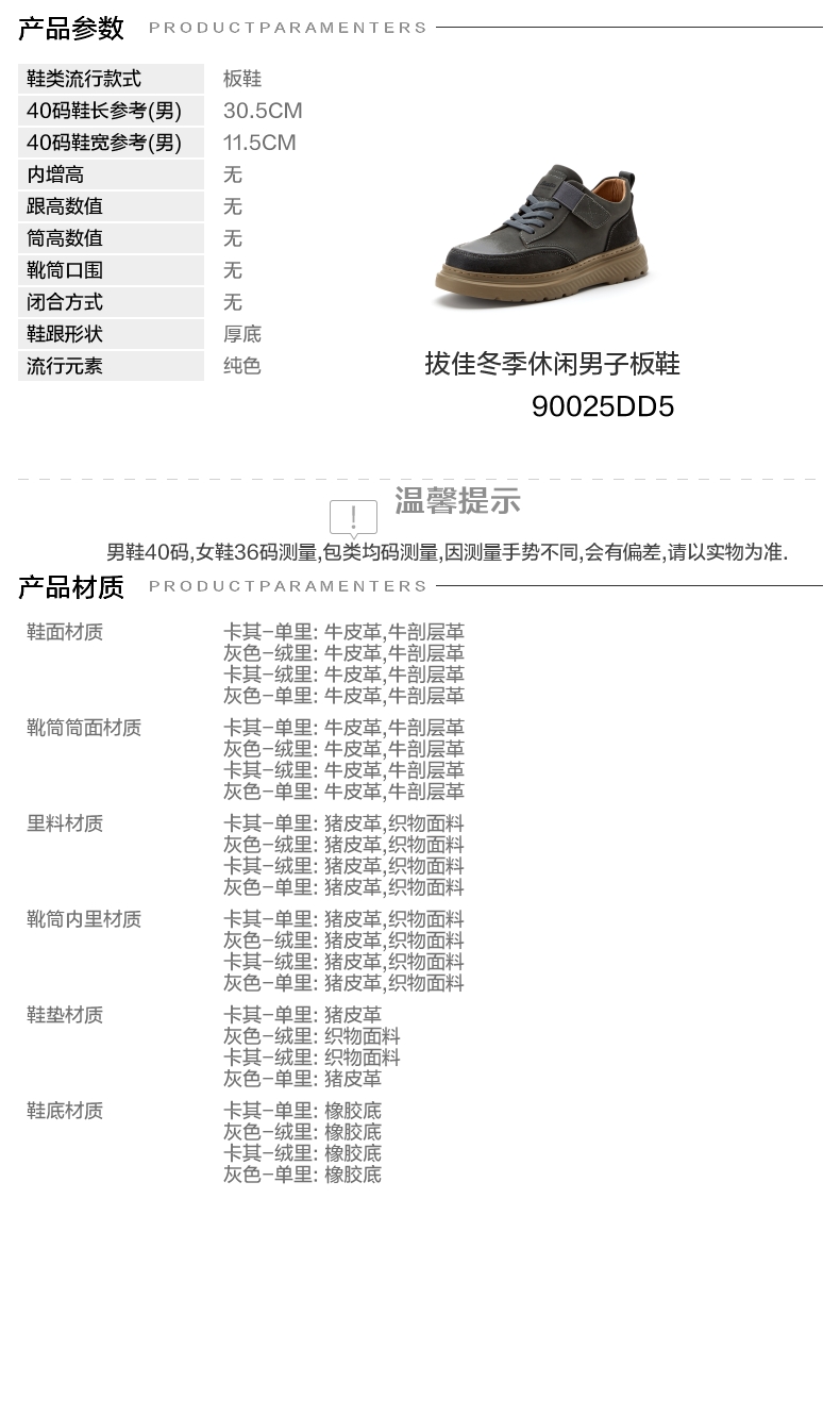 | 里料材质:织物面料猪皮革 | 上市时间:2025年冬季 | 制鞋工艺:胶贴皮鞋 | 款式季节:冬季 | 鞋垫材质:猪皮革 |