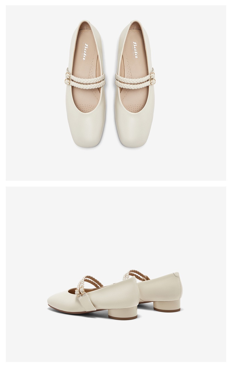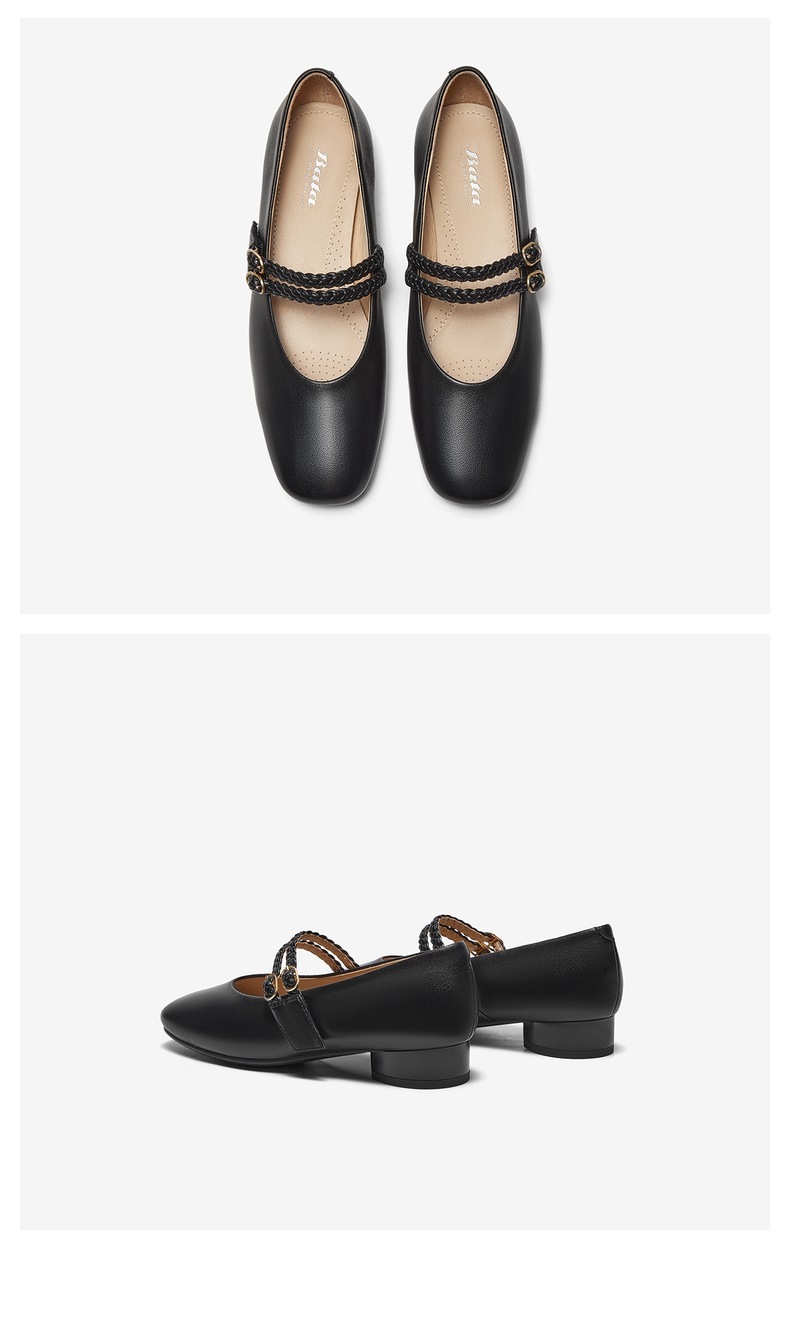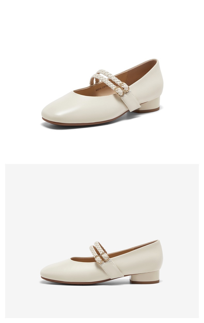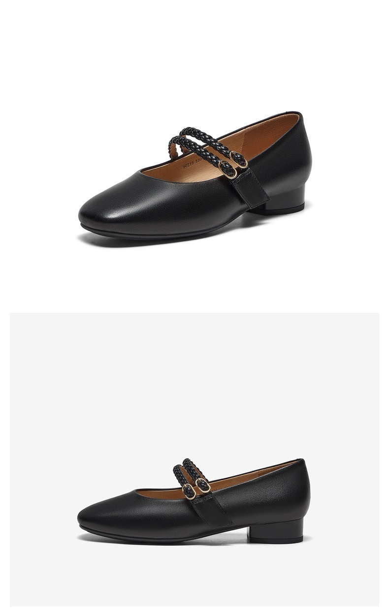 | 鞋类流行款式:玛丽珍鞋 | 鞋头款式:圆头 | 跟高范围:低跟鞋(小于3CM) | 鞋面图案:纯色 | 鞋跟形状:粗跟 |