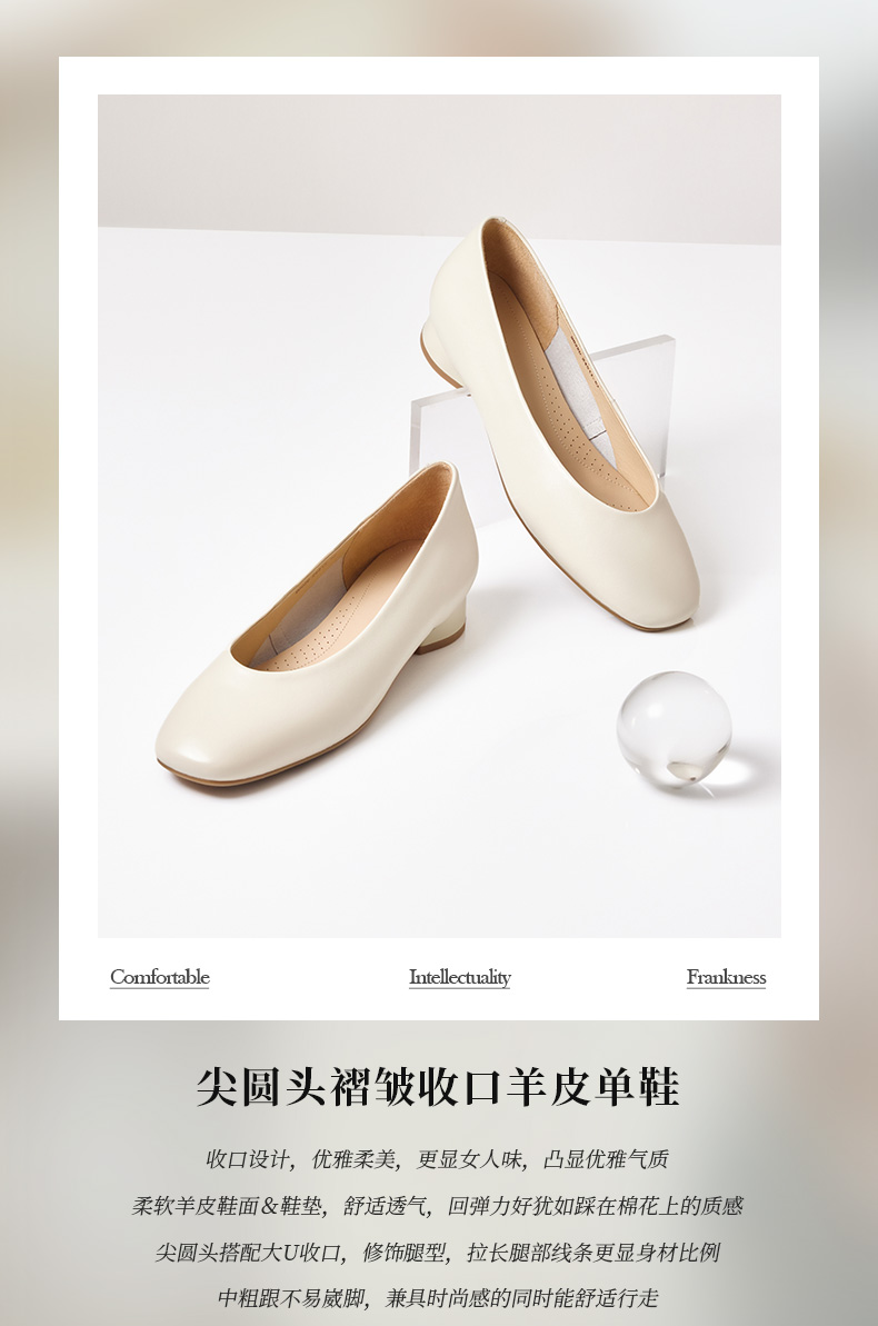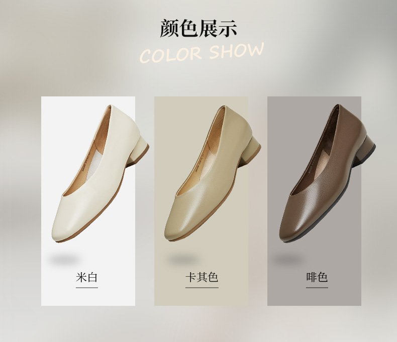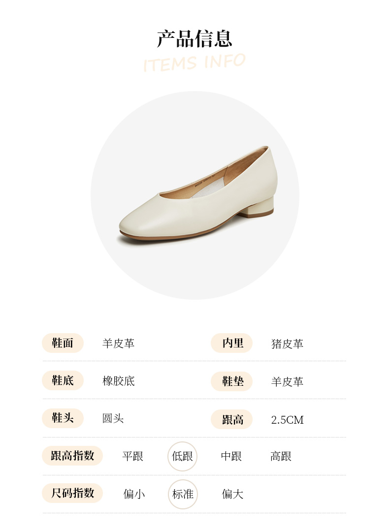 | 鞋类流行款式:浅口鞋 | 鞋头款式:圆头 | 跟高范围:低跟鞋(小于3CM) | 鞋面图案:纯色 | 鞋跟形状:粗跟 |