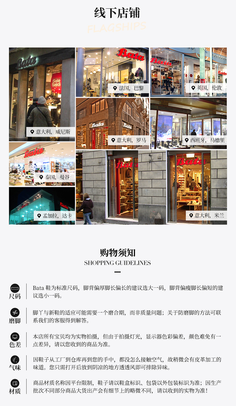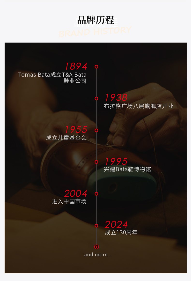 Bata(拔佳),品牌起源于1894年,在捷克的一间手工作坊诞生。品牌理念“我们专注制鞋”,120多年以来,Bata始终秉承百年传统制鞋技术与工艺,致力于为顾客提供舒适的鞋履。