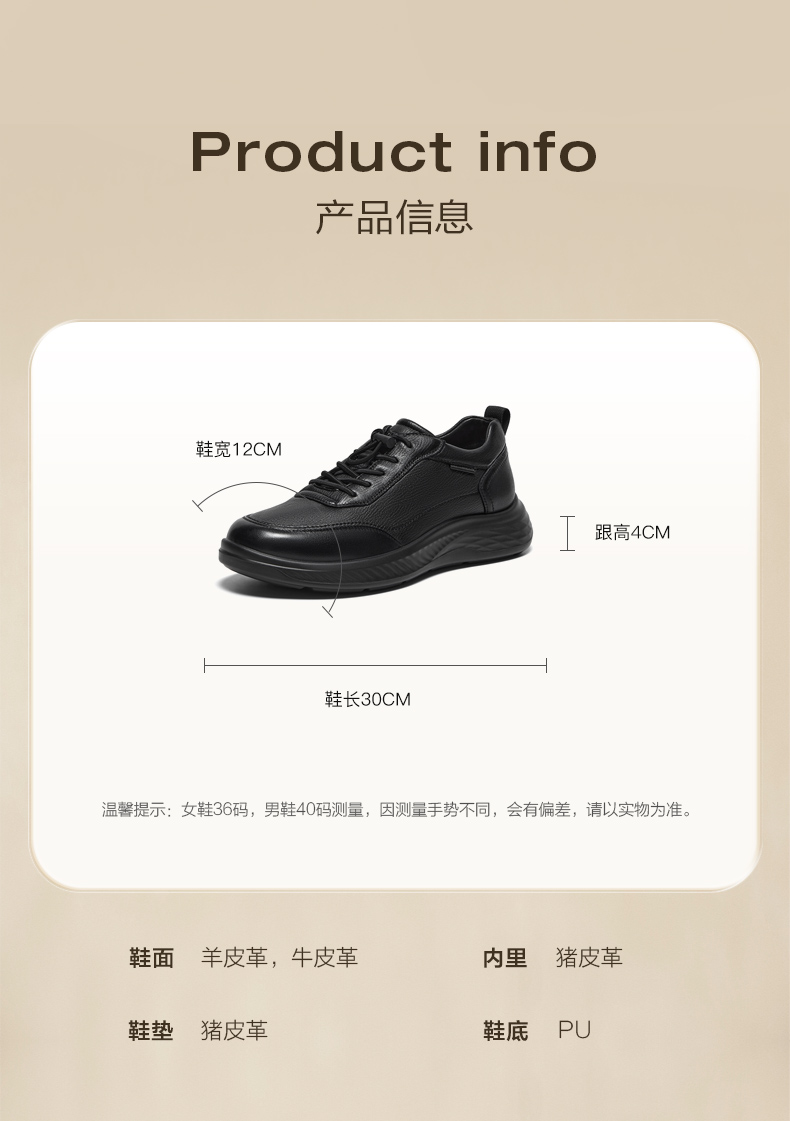 | 40码鞋长参考(男):30CM | 鞋帮:低帮 | 鞋头款式:圆头 | 鞋底材质:聚氨酯 | 鞋面图案:纯色 |