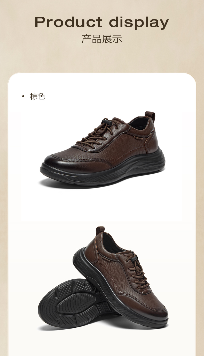 | 风格:休闲 | 色系:棕色 | 跟高数值:4CM | 40码鞋宽参考(男):12CM | 性别:男子 |