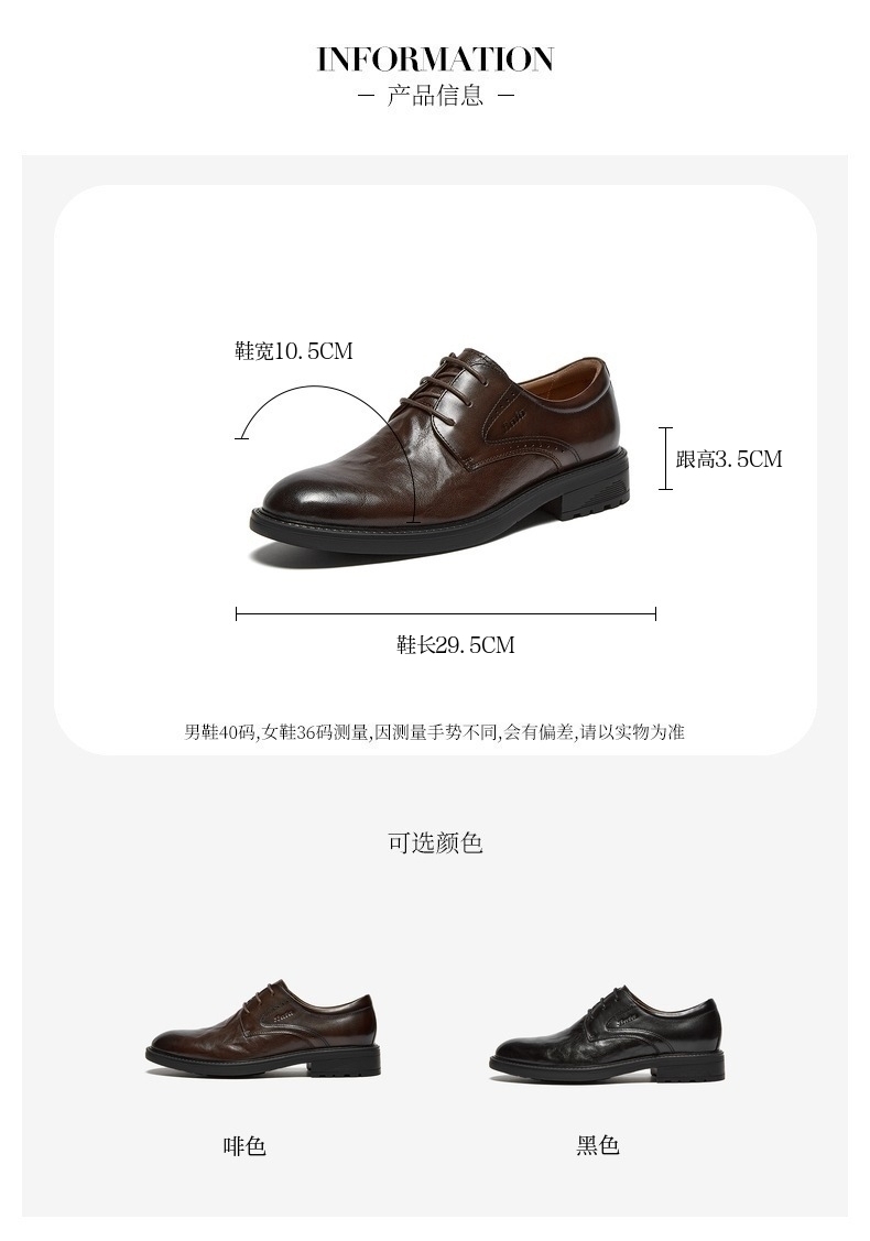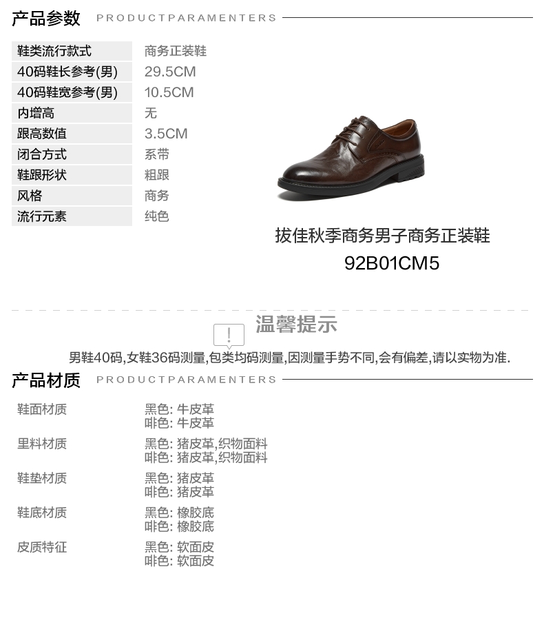 | 色系:棕色 | 跟高数值:3.5CM | 40码鞋宽参考(男):10.5CM | 性别:男子 | 里料材质:织物面料猪皮革 |
