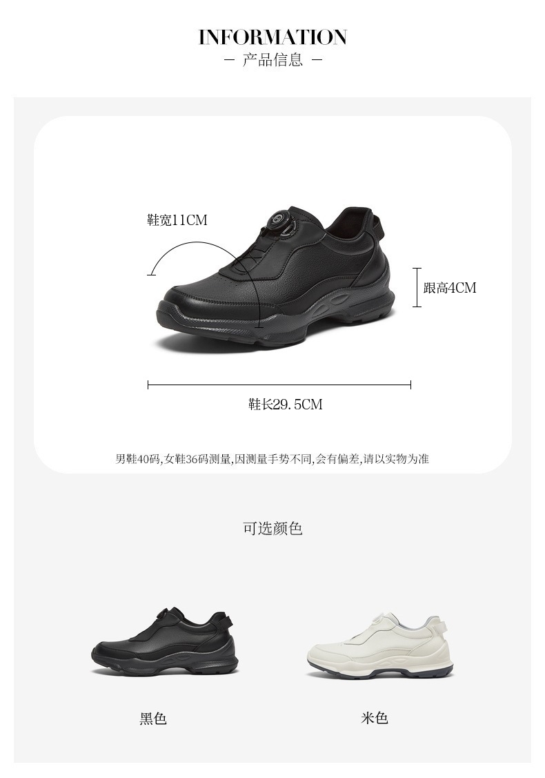 | 内增高:无 | 鞋跟形状:厚底 | 鞋面材质:复合材料牛皮革 | 流行元素:纯色 | 闭合方式:旋扣 |
