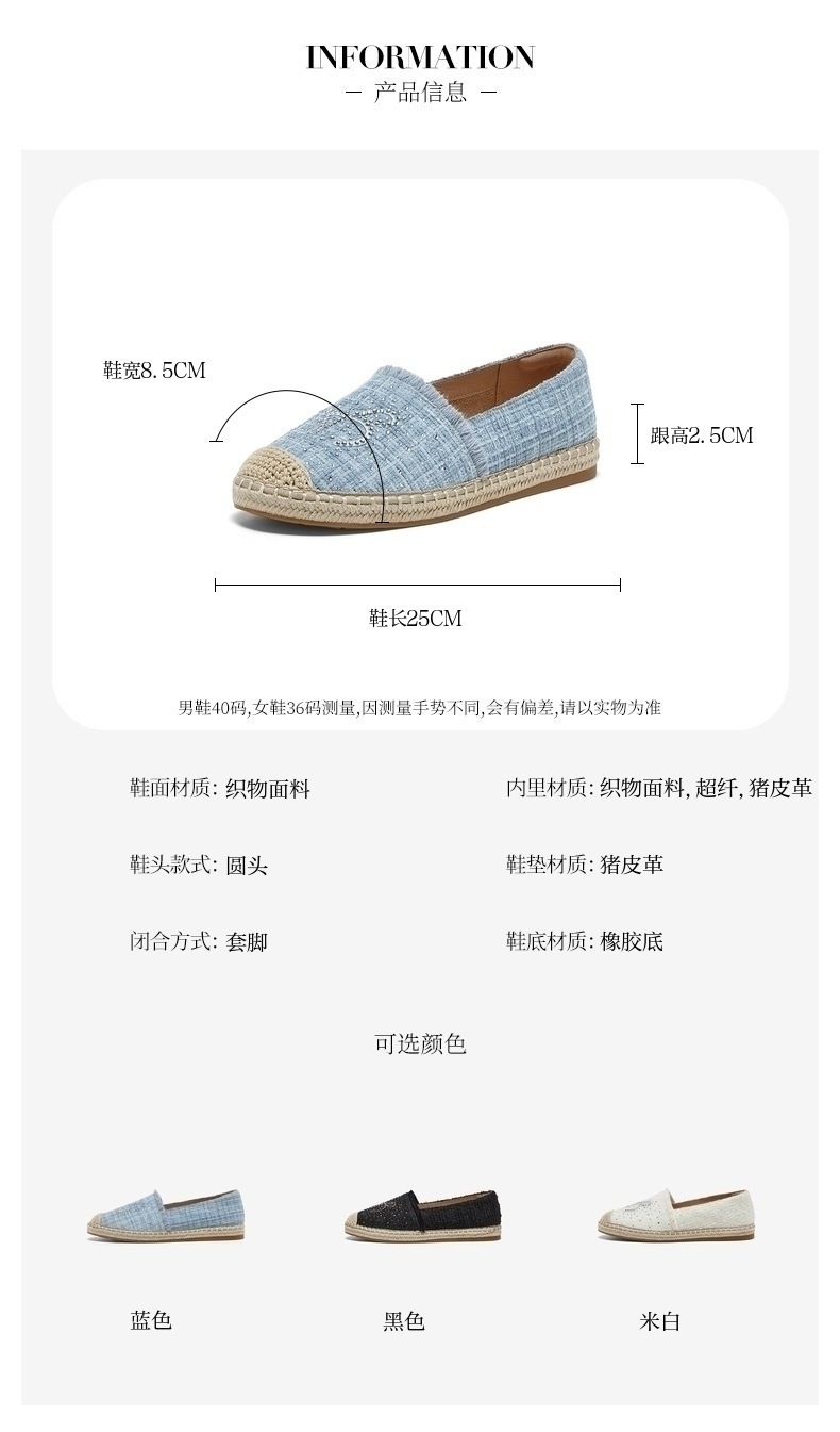 | 闭合方式:套脚 | 所在区域:电子商务 | 配跟:无 | 开口深度:深口 | 风格分类:渔夫鞋 |
