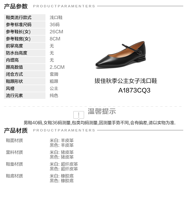 | 跟高数值:2.5CM | 色系:米白 | 配跟:无 | 性别:女子 | 里料材质:猪皮革 |